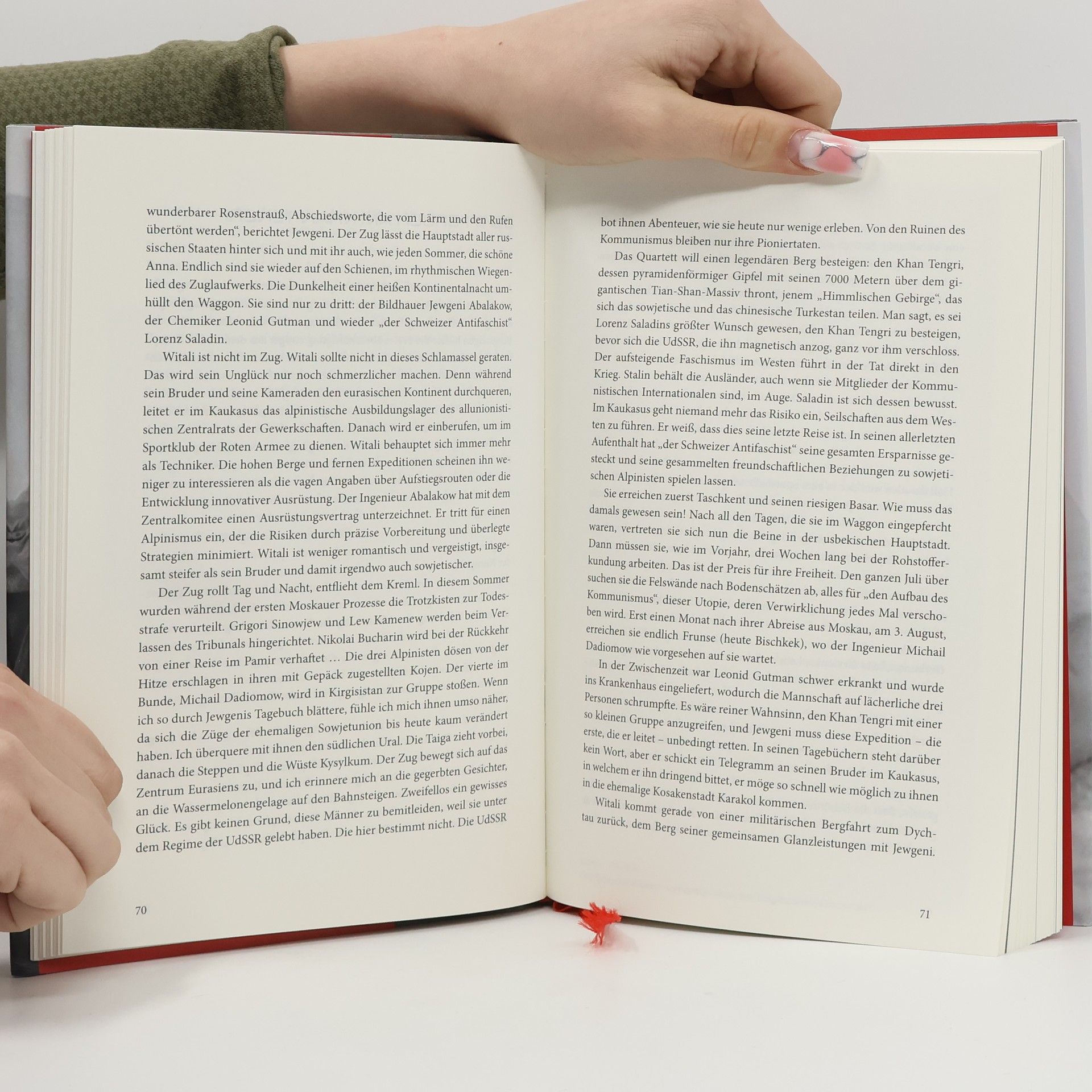 Witali und Ewgeni Abalakow unternehmen zahlreiche Expeditionen im Kaukasus sowie im zentralasiatischen Pamir und Tian Shan, nicht wenige davon gemeinsam mit österreichischen Schutzbund Emigranten. Dort besteigen sie in den 1930er Jahren im Namen des Systems die Siebentausender Pik Stalin und Pik Lenin, sowie den Khan Tengri - und werden als Helden bejubelt. Bald wendet sich das Blatt: 1938 wird Witali Opfer des Großen Terrors und der Säuberungen. Er überlebt den Gulag, kehrt in die Berge zurück und stellt seine Fähigkeiten erneut in den Dienst des Systems. Sein Bruder Jewgeni wird 1948 tot aufgefunden. Die Umstände seines Todes wurden nie ganz geklärt.