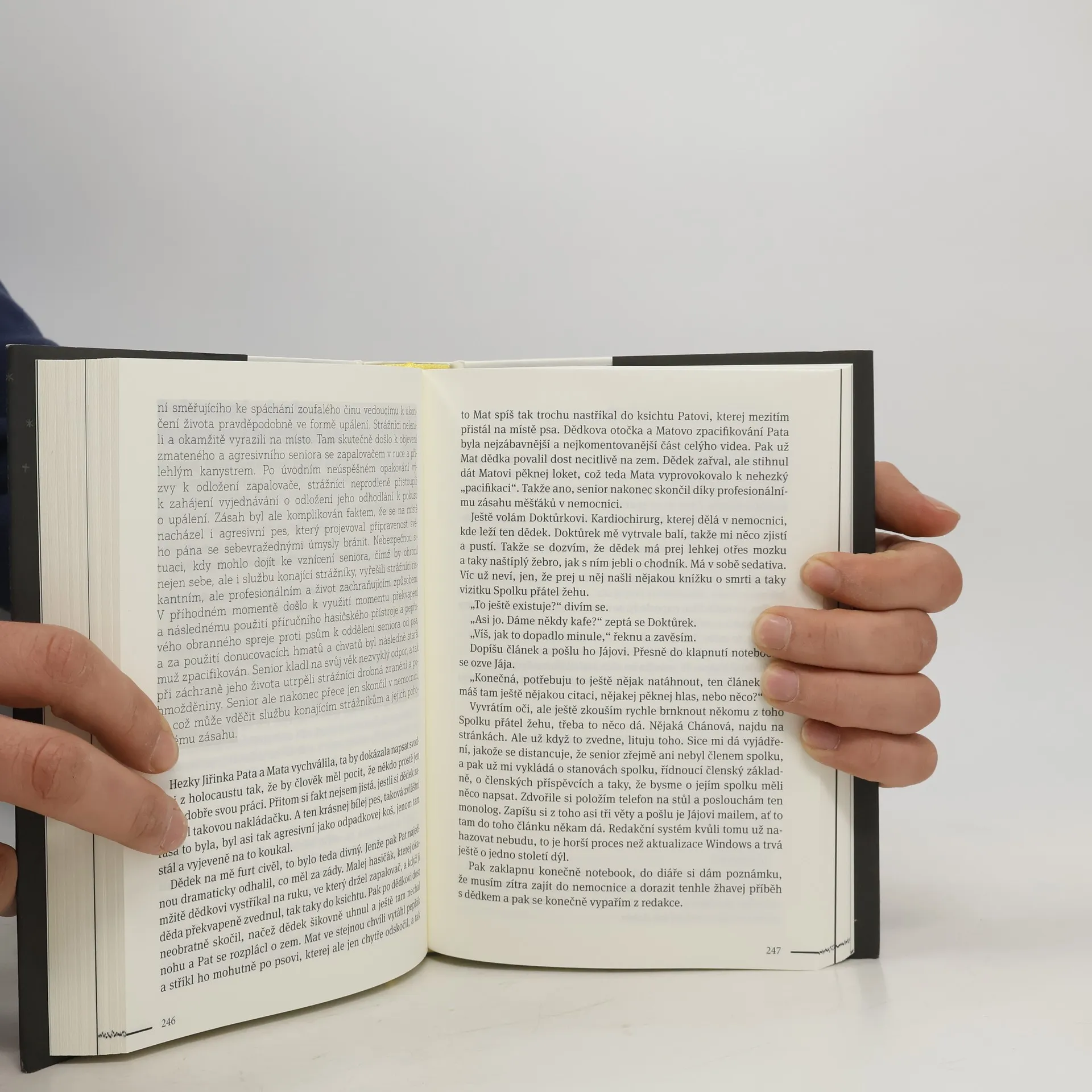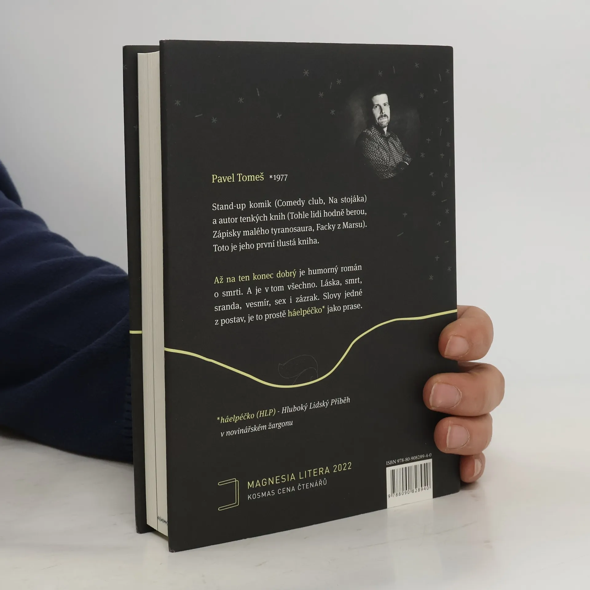 Humorný román o smrti. A je v tom všechno. Láska, smrt, sranda, vesmír, sex i zázrak. Slovy jedné z postav, je to prostě „háelpéčko* jako prase“. (*háelpéčko (HLP) –Hluboký Lidský Příběh v novinářském žargonu) Pavel Tomeš je stand-up komik, kterého můžete znát z TV pořadů Comedy club a Na stojáka. Vydal sbírky fejetonů Tohle lidi hodně berou, Zápisky malého tyranosaura a Facky z Marsu.