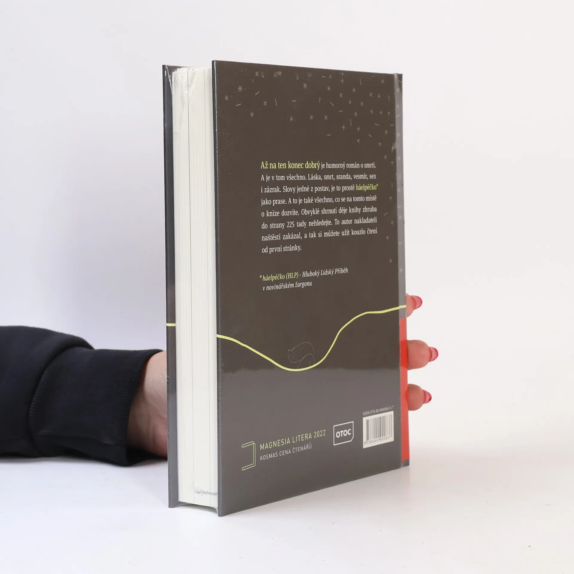 Humorný román o smrti. A je v tom všechno. Láska, smrt, sranda, vesmír, sex i zázrak. Slovy jedné z postav, je to prostě „háelpéčko* jako prase“. (*háelpéčko (HLP) –Hluboký Lidský Příběh v novinářském žargonu)