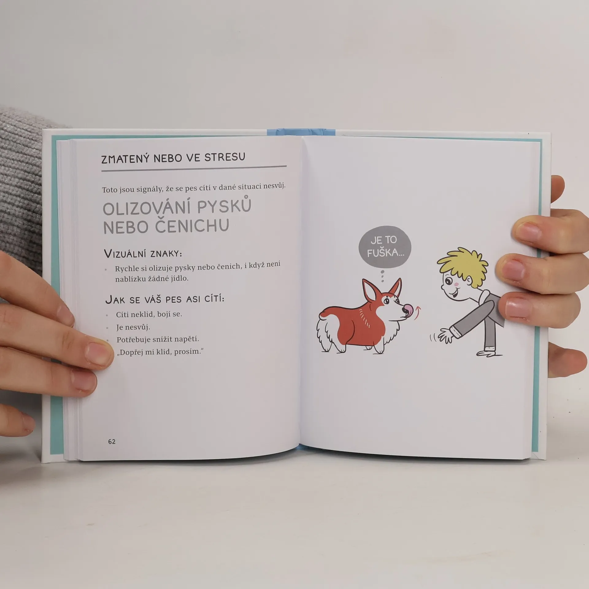 Tato veselá knížka s krásnými ilustracemi potěší každého pejskaře a naučí vás rozpoznávat jemné signály, kterými psi vyjadřují své pocity. Čím lépe porozumíte jejich řeči, tím snazší bude zajistit, aby se cítili bezpečně a šťastně. Psi komunikují nejen štěkáním a vrtěním ocasu, ale i tělesnou řečí, a neporozumění těmto signálům může zkomplikovat život jak psům, tak jejich páníčkům. Stejně jako lidé prožívají psi strach, zlost, štěstí, smutek či překvapení. Mají své oblíbené a nenáviděné věci a snaží se vyhnout konfliktům. Když pes naznačuje, že je něco příliš intenzivní, může se situace zhoršit, pokud špatně přečteme jeho signály. Agresivní chování, jako je vrčení nebo kousání, je obvykle až poslední možností, když ostatní signály selhaly. Kniha obsahuje ilustrace, které vám pomohou rozlišovat mezi podobnými výrazy a projevy psího chování. Porovnávání těchto kreseb odhalí klíčové rozdíly a poskytne kontext pro správné porozumění. Věříme, že vám kniha pomůže lépe chápat psí řeč a tím usnadní interakci s vaším čtyřnohým přítelem. Věnujte mu pozornost v různých situacích a nechte ho, aby vám ukázal, co ho stresuje, vzrušuje a co mu přináší radost!