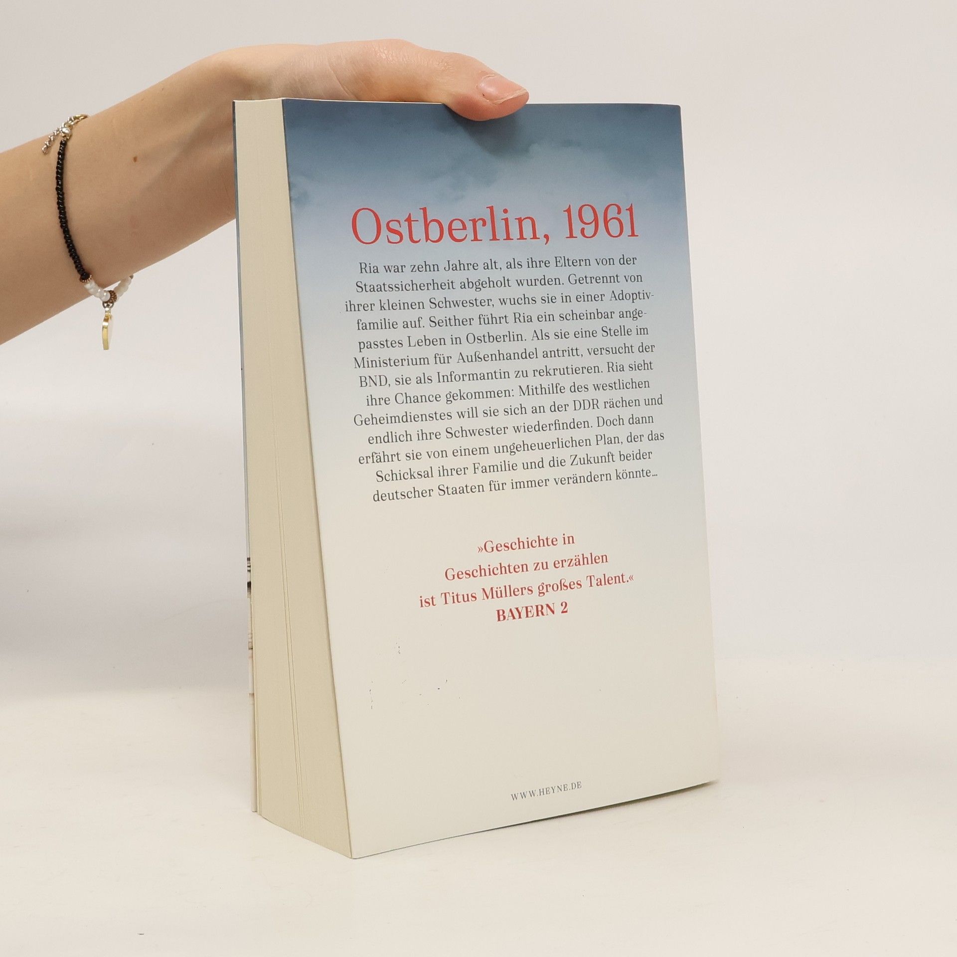 Ria ist zehn Jahre alt, als ihre Eltern von der Staatssicherheit abgeholt werden. Sie wird von ihrer kleinen Schwester getrennt und in einer Adoptivfamilie untergebracht. Seither führt Ria in Ostberlin ein scheinbar angepasstes Leben. Erst als der BND sie als Informantin rekrutiert, sieht sie ihre Chance gekommen. Mithilfe des westlichen Geheimdienstes will Ria sich an der DDR rächen und endlich ihre Schwester wiederfinden. Doch dann erfährt sie im Sommer 1961 von einem ungeheuerlichen Plan, der ihr Schicksal und die Zukunft beider deutscher Staaten für immer verändern könnte …