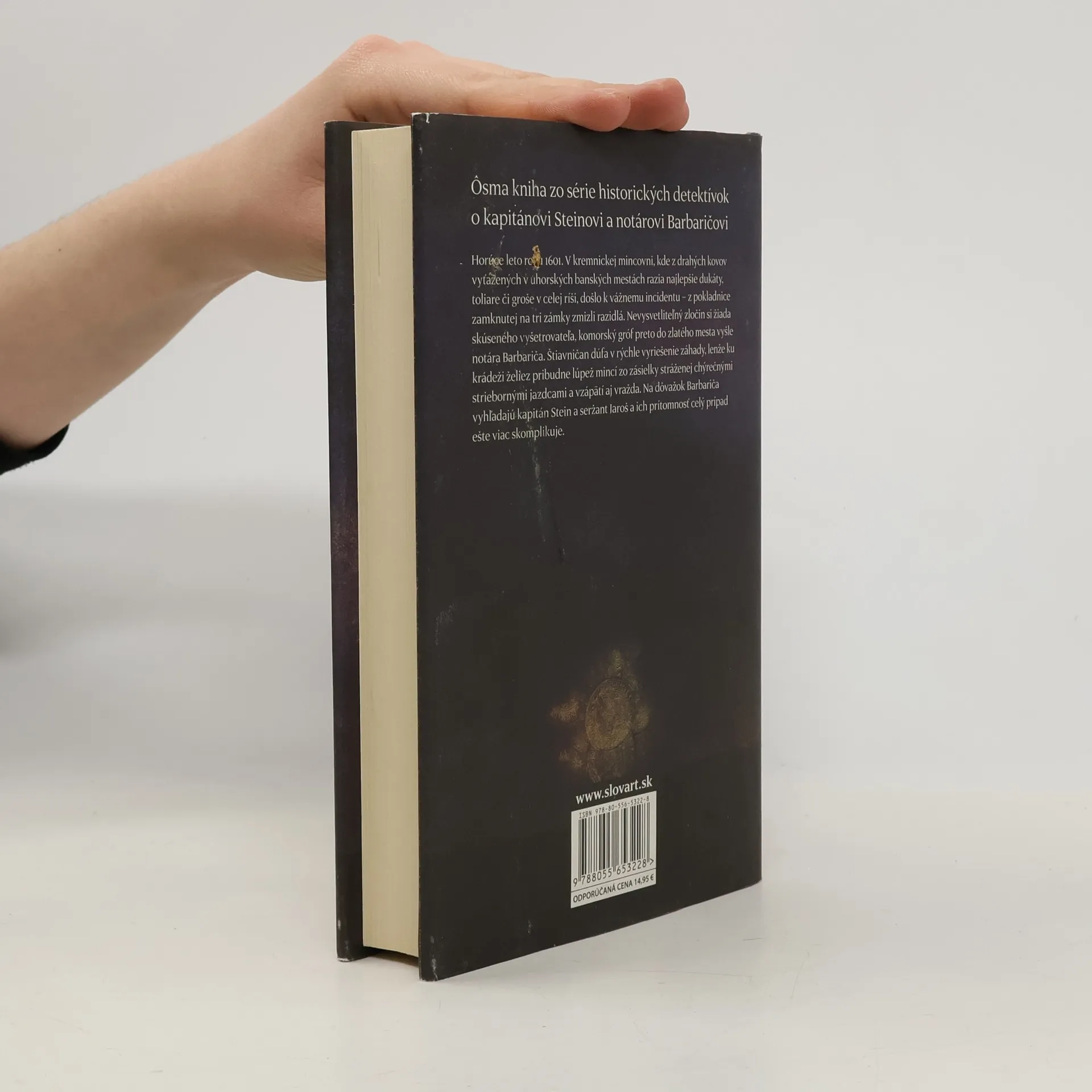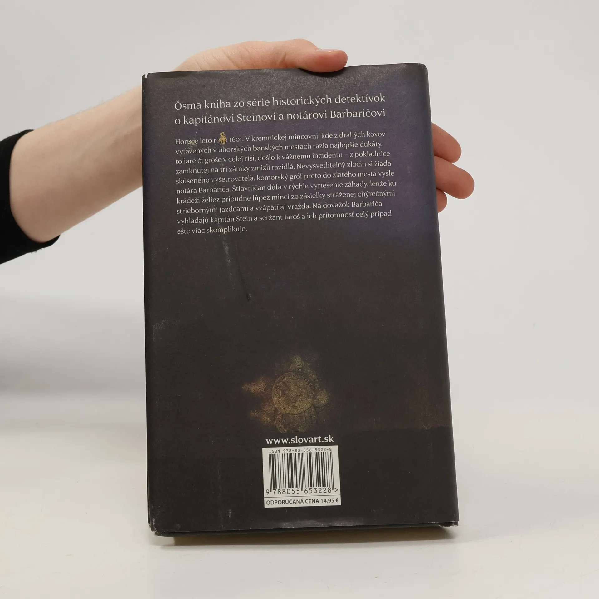 Ôsma kniha z cyklu historických detektívok o kapitánovi Steinovi a notárovi Barbaričovi. Horúce leto roku 1601. V kremnickej mincovni, kde z drahých kovov vyťažených v uhorských banských mestách razia najlepšie dukáty, toliare či groše v celej ríši, došlo k vážnemu incidentu - z pokladnice zamknutej na tri zámky zmizli razidlá. Nevysvetliteľný zločin si žiada skúseného vyšetrovateľa, komorský gróf preto do zlatého mesta vyšle notára Barbariča. Štiavničan dúfa v rýchle vyriešenie záhady, lenže ku krádeži želiez pribudne lúpež mincí zo zásielky stráženej chýrnymi striebornými jazdcami a vzápätí aj prvá vražda. Na dôvažok Barbariča vyhľadajú kapitán Stein a seržant Jaroš a ich prítomnosť celý prípad ešte viac skomplikuje.