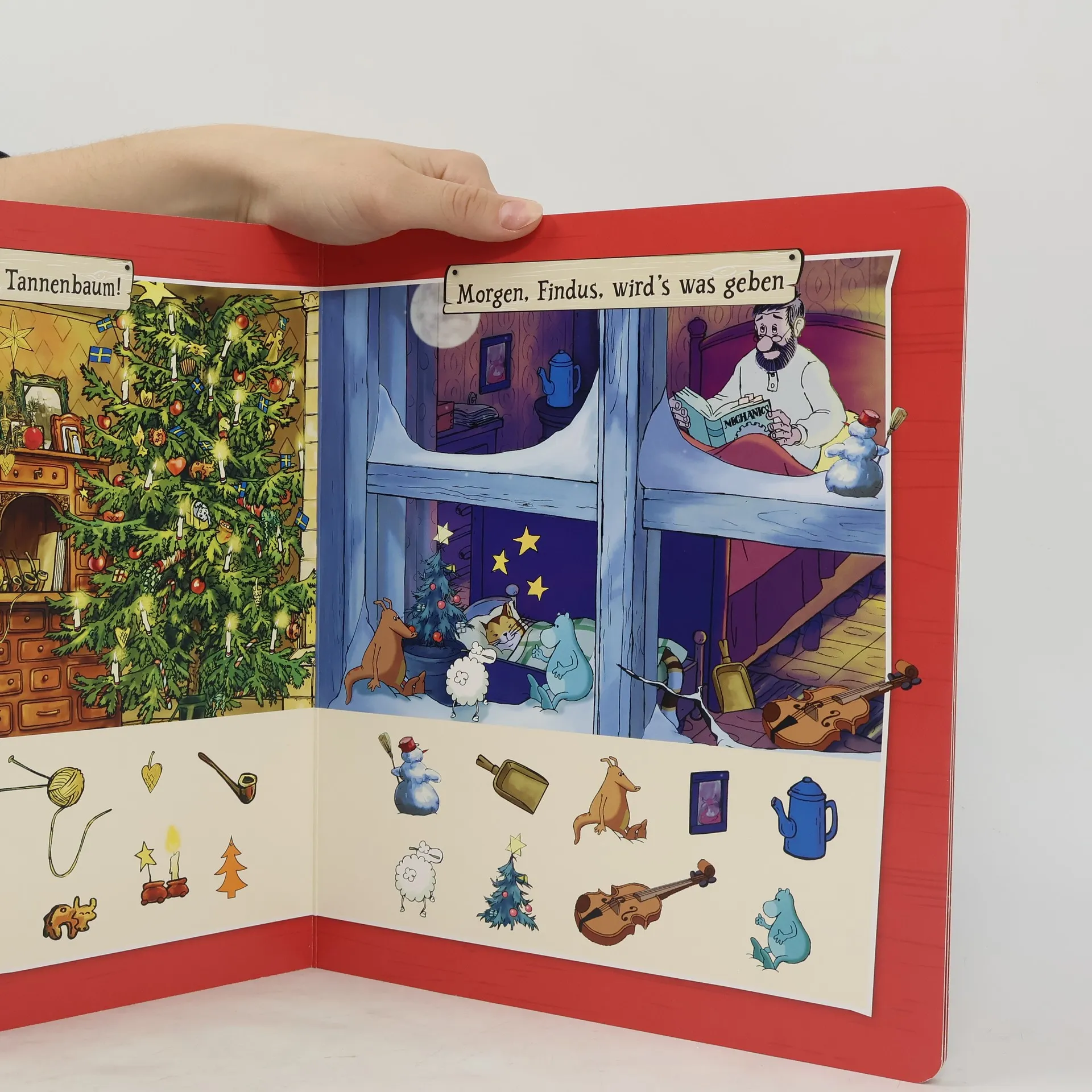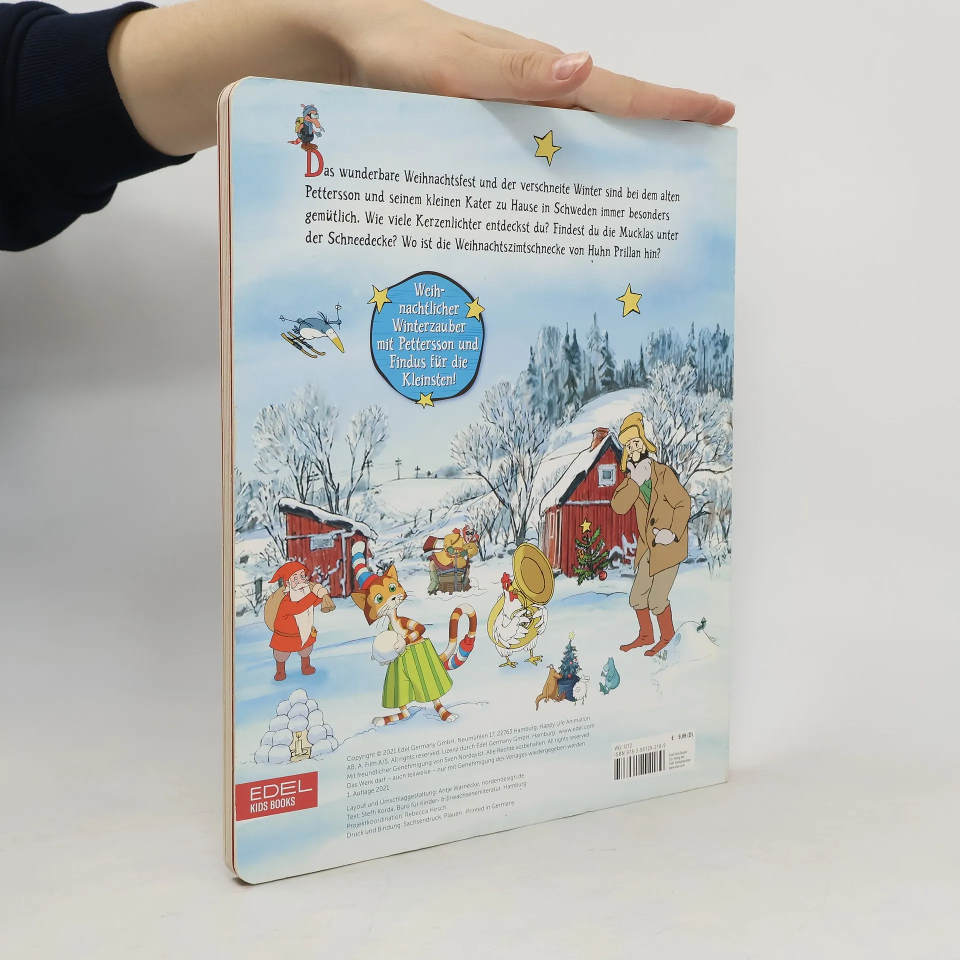 Das wunderbare Weihnachtsfest und der verschneite Winter sind zu Hause bei dem alten Pettersson und seinem kleinen Kater in Schweden immer besonders gemütlich. Wie viele Kerzenlichter entdeckst du? Findest du die Mucklas unter der Schneedecke? Wo ist die Weihnachtszimtschnecke von Huhn Prillan hin? Weihnachtlicher Winterzauber mit Pettersson und Findus für die Kleinsten!