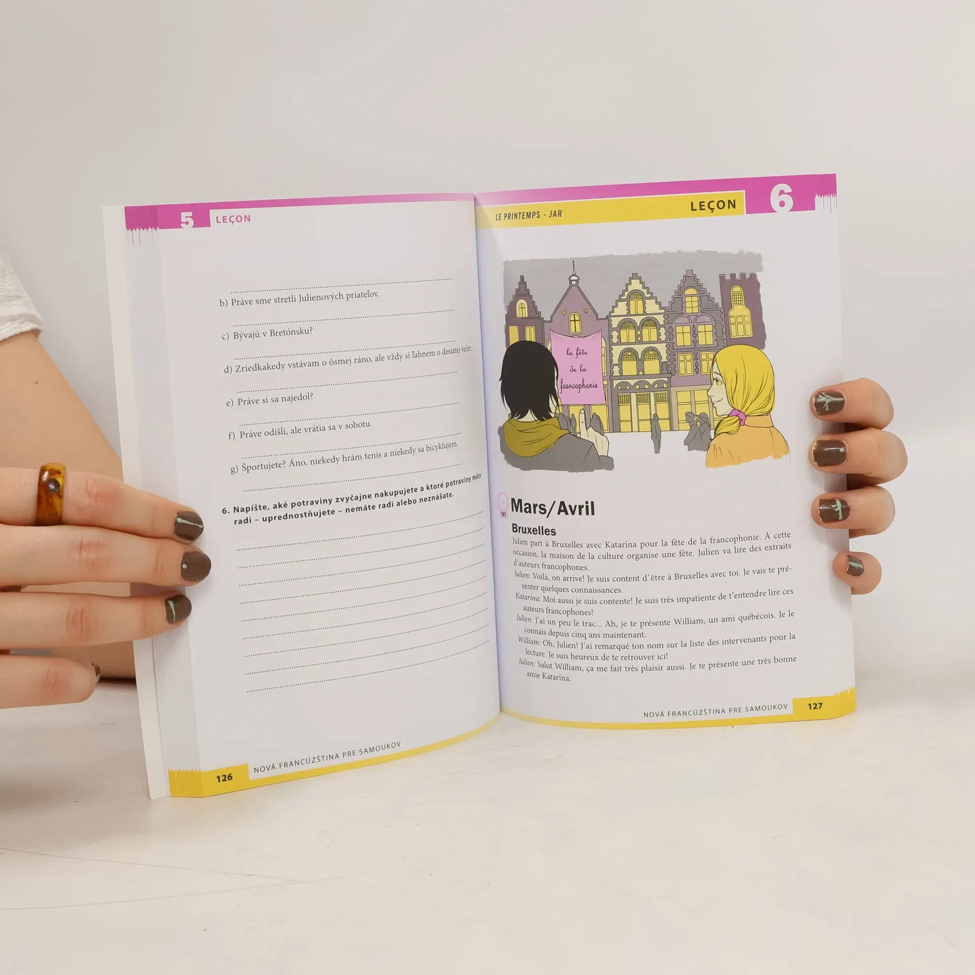 Táto kniha je určená všetkým, ktorí chcú postupne a netradičnou formou spoznať nielen francúzsky jazyk, ale aj francúzsku kultúru. Učebnica je zostavená tak, aby sa z nej mohli učiť úplní začiatočníci aj pokročilejší používatelia tohto jazyka, samouci aj účastníci jazykových kurzov. Slovíčka, dôležité frázy aj gramatiku sa čitateľ učí popri spoznávaní európskych frankofónnych regiónov, ktoré počas celého roka navštevuje hlavný hrdina knihy Julien Duval. Spoznáva tak život v Paríži, Bruseli, Štrasburgu či na francúzskom vidieku. Učebnica obsahuje špeciálnu úvodnú časť so zrozumiteľne vysvetlenou francúzskou výslovnosťou a desať prehľadne členených lekcií. Kniha obsahuje bohatý prehľad gramatiky, základnej slovnej zásoby a množstvo fráz, ktoré potrebujete v bežnej komunikácii vo frankofónnom prostredí.