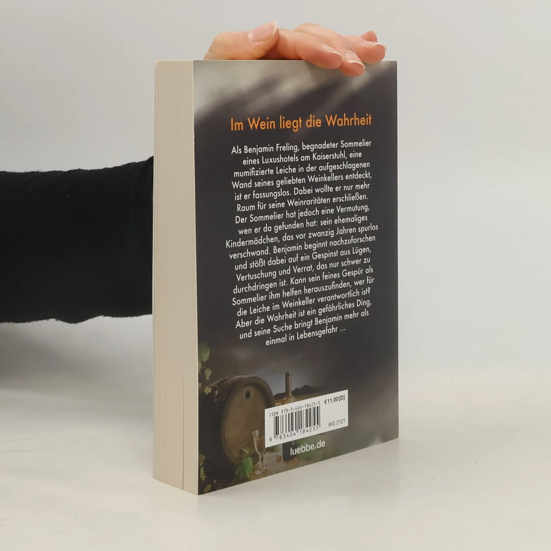 Im Wein liegt die Wahrheit Als Benjamin Freling, begnadeter Sommelier eines Luxushotels am Kaiserstuhl, eine mumifizierte Leiche in der aufgeschlagenen Wand seines geliebten Weinkellers entdeckt, ist er fassungslos. Der Sommelier hat jedoch eine Vermutung, wen er da gefunden hat: sein ehemaliges Kindermädchen, das vor 20 Jahren verschwand. Benjamin beginnt nachzuforschen und stößt dabei auf ein Gespinst aus Lügen, Vertuschung und Verrat, das nur schwer zu durchdringen ist. Kann sein feines Gespür als Sommelier ihm helfen herauszufinden, wer für die Leiche im Weinkeller verantwortlich ist? Aber die Wahrheit ist gefährlich, und seine Suche bringt Benjamin mehr als einmal in Lebensgefahr ...