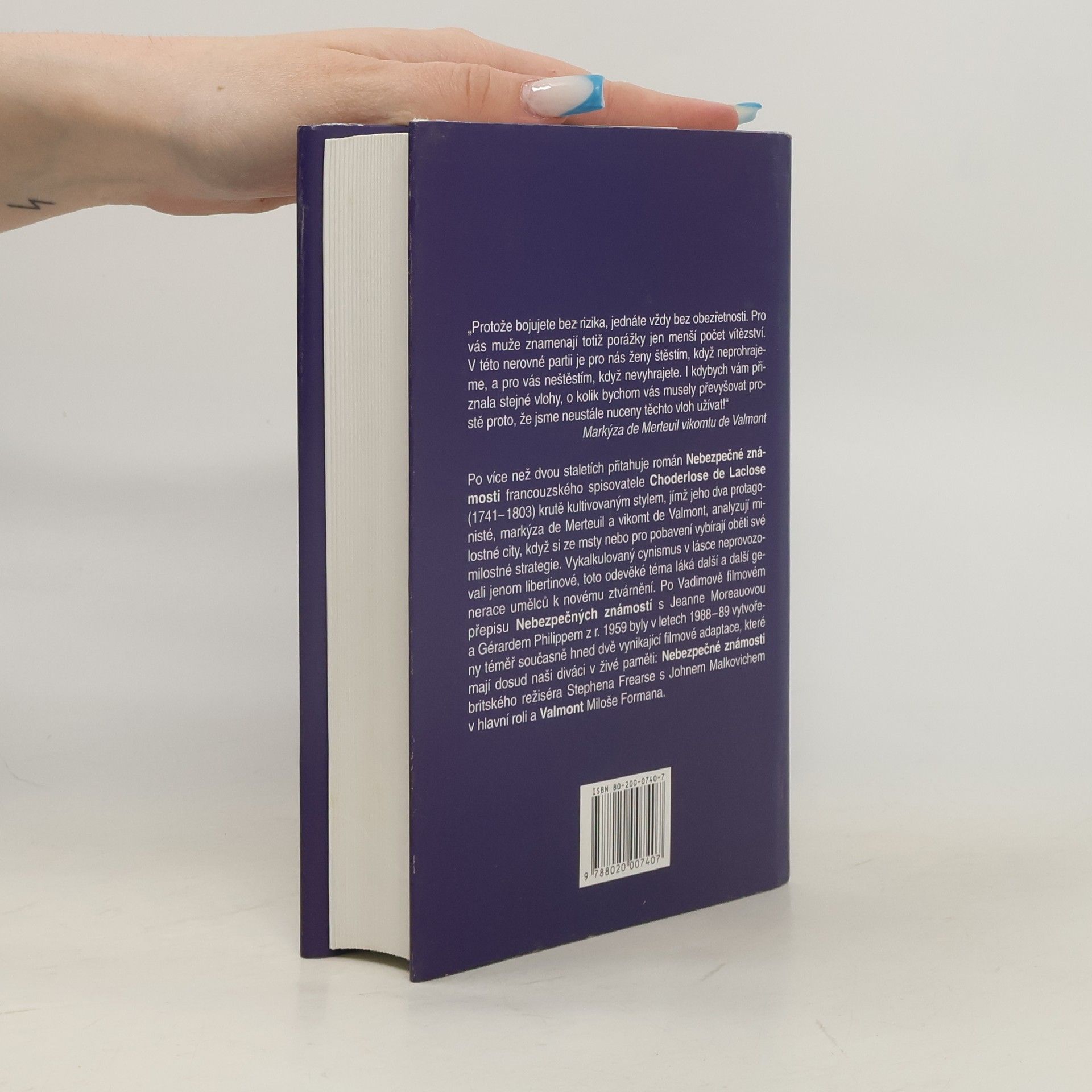 Po více než dvou staletích přitahuje román Nebezpečné známosti krutě kultivovaným stylem, jímž jeho dva protagonisté, markýza de Merteuil a vikomt de Valmont, analyzují milostné city a pro pobavení nebo ze msty vybírají oběti své milostné strategie. Velké pozornosti se těší i u režisérů - připomeňme si Vadimův film z roku 1959 s Jeanne Moreauovou a Gérardem Philipem, adaptaci britského režiséra Stephena Frearse s Johnem Malkovichem či Formanův film Valmont.