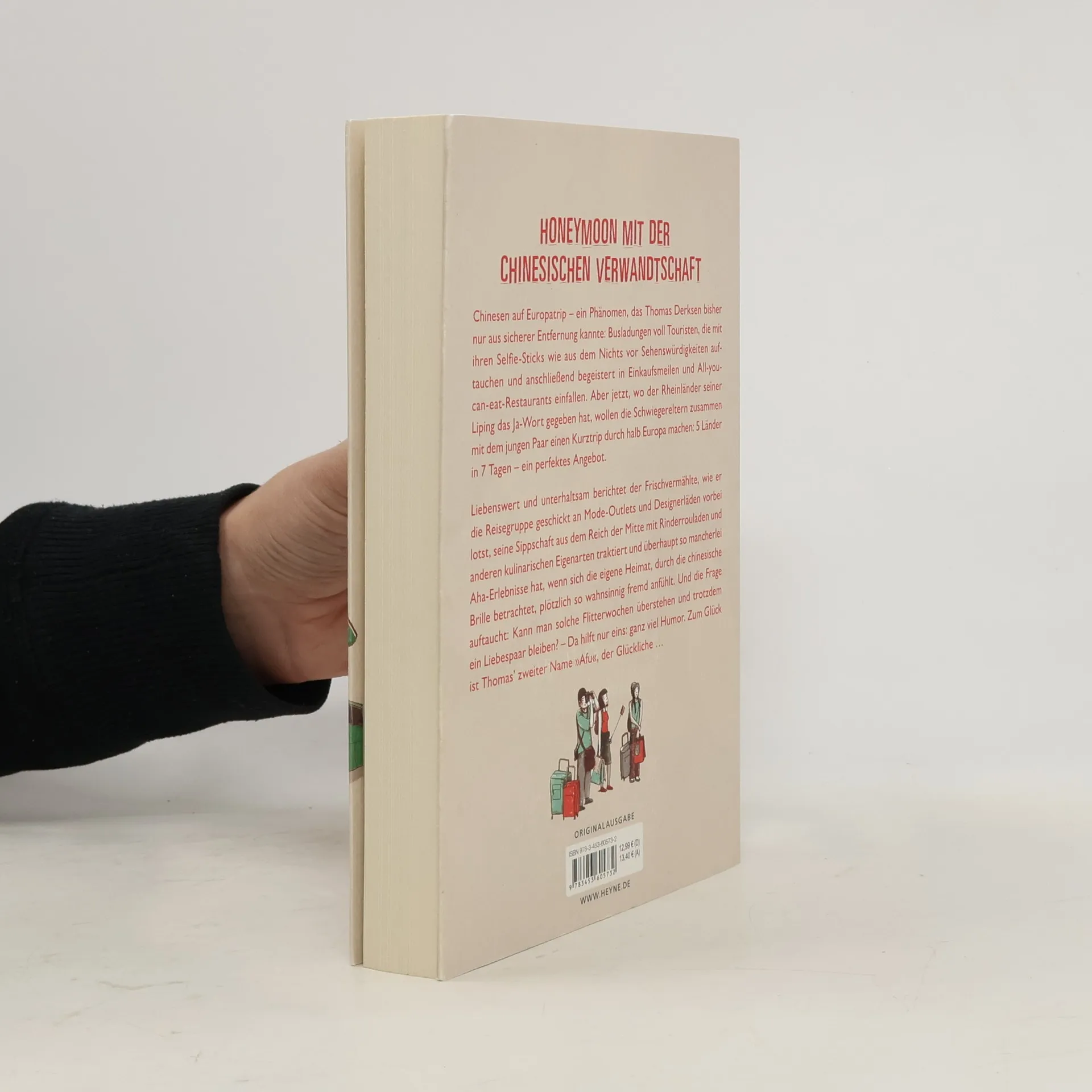 Zum Verlieben komisch! Wenn zum Honeymoon die gesamte chinesische Verwandtschaft mitreistChinesen auf Europatrip – ein Phänomen, das Thomas Derksen bisher nur aus sicherer Entfernung Busladungen von Touristen, die mit ihren Selfie-Sticks wie aus dem Nichts vor Sehenswürdigkeiten auftauchen und anschließend fröhlich schnatternd in Einkaufsmeilen und All-you-can-eat-Restaurants einfallen. Aber jetzt, wo der Rheinländer seiner Liping das Ja-Wort gegeben hat, wollen die chinesischen Schwiegereltern zusammen mit dem jungen Paar einen Kurztrip durch halb Europa 5 Länder in 7 Tagen – ein perfektes Angebot. Ungemein liebenswert und unterhaltsam berichtet Derksen, wie er sich durch Mode-Outlets und Designerläden quält, seine chinesische Sippschaft mit Rindsrouladen und anderen kulinarischen Eigenarten traktiert und überhaupt so mancherlei Aha-Erlebnisse hat, wenn sich die eigene Heimat, durch die chinesische Brille betrachtet, plötzlich so wahnsinnig fremd anfühlt. Und die Frage Kann man solche Flitterwochen überstehen und trotzdem ein Liebespaar bleiben? – Da hilft nur ganz viel Humor. Zum Glück ist Derksens zweiter Name »Afu«, der glückliche Thomas…
