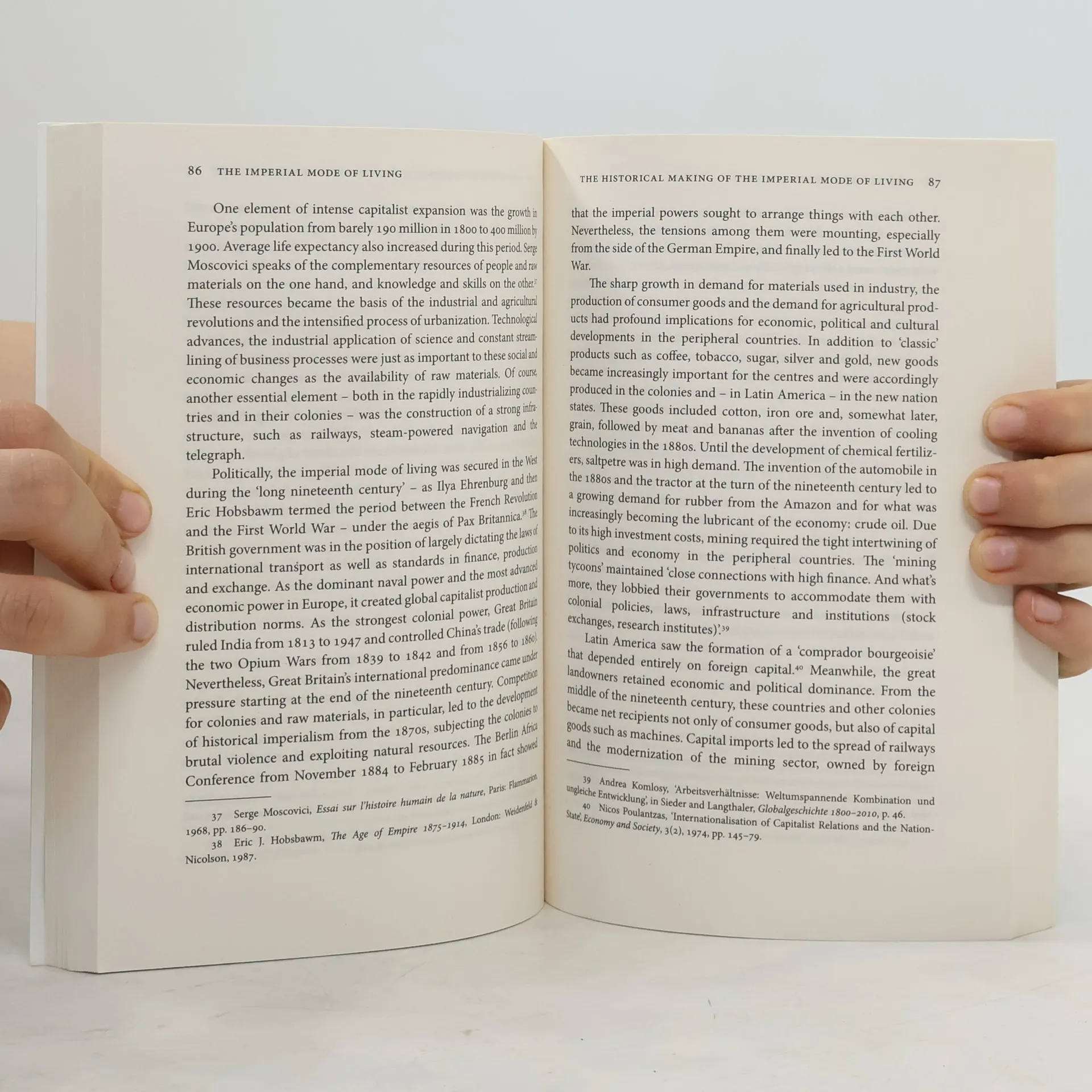 Brand and Wissen highlight the fact that capitalism implies uneven development, as well as a constant and accelerating universalisation of a Western mode of production and living. The logic of liberal markets since the 19th century, and especially since World War II, has been inscribed into everyday practices that are usually unconsciously reproduced. The authors show that these practices are a main driver of the ecological crisis and economic and political instability. The book also implies that people's everyday practices, including individual and societal orientations and identities, rely heavily on the unlimited appropriation of resources; a disproportionate claim on global and local ecosystems and sinks; and cheap labour from elsewhere. This availability of commodities is largely organised through the world market, backed by military force and/or the asymmetric relations of forces as they have been inscribed in international institutions. Moreover, the 'Imperial Mode of Living' implies asymmetrical social relations along class, gender and race within the respective countries. Here too, it is driven by the capitalist accumulation imperative, growth-oriented state policies and status consumption