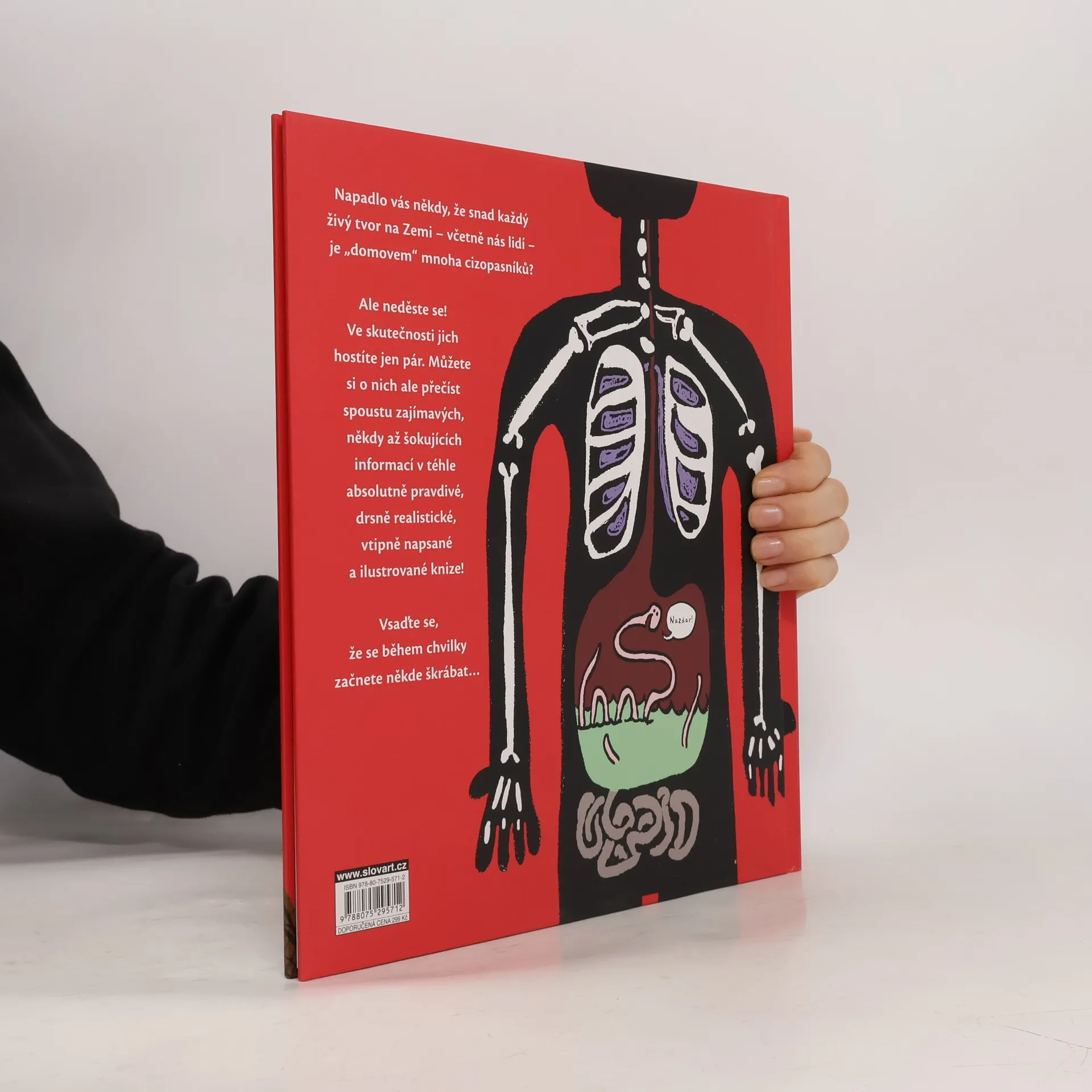 Napadlo vás někdy, že snad každý živý tvor na naší planetě – včetně nás lidí – je „domovem“ mnoha různých cizopasníků? Jsou stovky všelijakých parazitů, od maličkých roztočů po dlouhé tasemnice, kteří mohou žít na povrchu nebo uvnitř našich těl. Ale neděste se! Vaše těla jsou bezpochyby příliš čistá a upravená na to, aby uživila mnoho parazitů. Pár jich však „hostíte“, i když si to nemyslíte. A o těch dalších si můžete přečíst spoustu zajímavých, někdy až šokujících informací v téhle absolutně pravdivé, drsně realistické i vtipně napsané a ilustrované knížce! Že se od teď během několika následujících vteřin začnete někde škrábat?! To je jasné! A když vás čtení pobaví, můžete si užít také další knihu z dílny populárního autora a ilustrátora – Bobky, šišky a jiná hovínka, tedy knihu o tom, o čem se většinou nemluví.