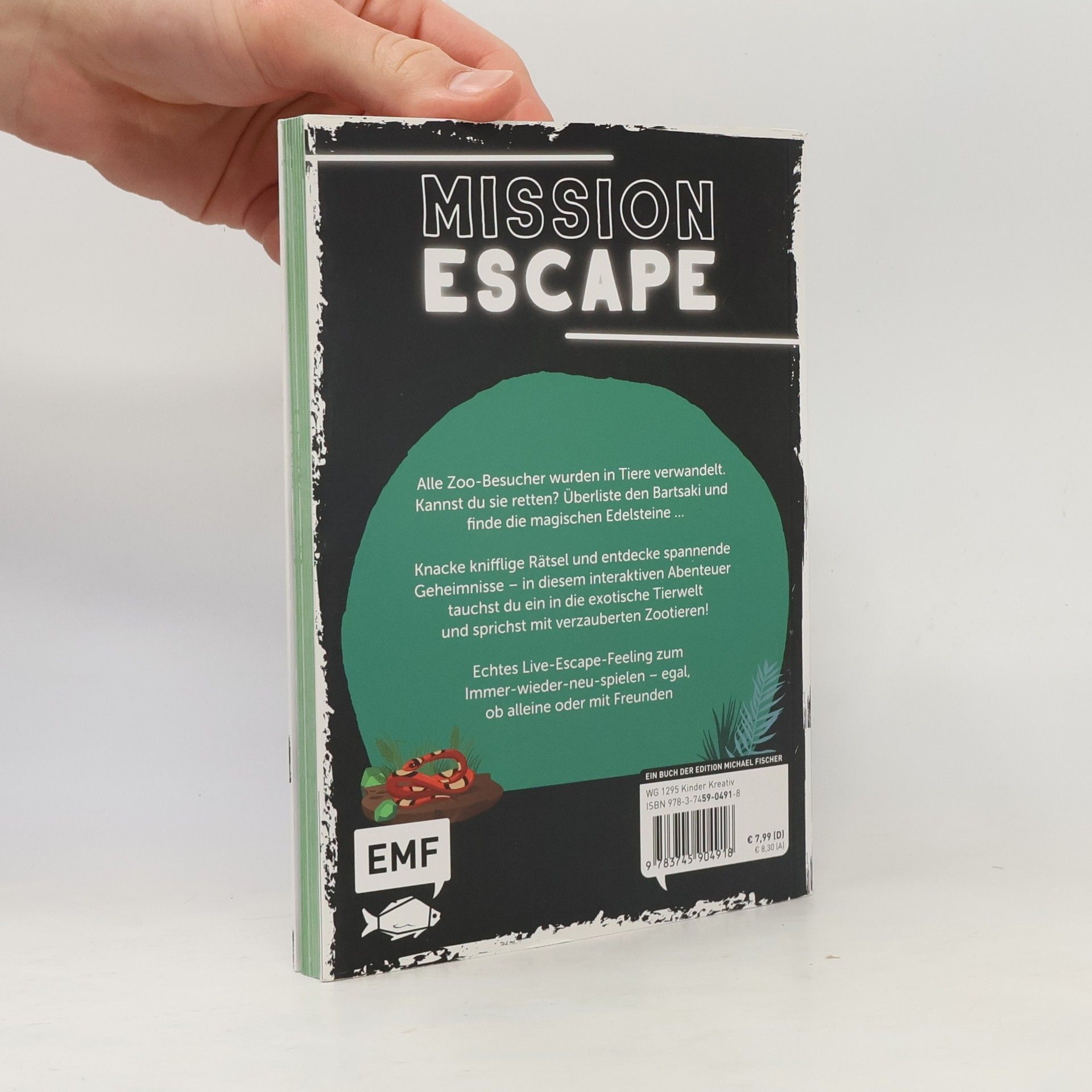 Löse das rätselhafte Geheimnis des Zoos! Spannendes Escape Game für Kinder ab 9 Jahren Im Zoo gehen merkwürdige Ereignisse vor sich, denn alle Besucher haben sich in Tiere verwandelt! Nur du kannst sie retten! Also brich auf zu deiner großen Mission und rette den Zoo und seine Besucher. In diesem interaktiven Rätselbuch mit spannenden Geheimnissen erwarten dich unglaubliche Abenteuer. Die ausklappbare Übersichtskarte und der Decoder helfen dir bei der Lösung. Und das Beste: Mission Escape kann immer wieder neu gespielt werden! Egal, ob alleine oder mit Freunden – schlag die erste Seite auf und los geht's! Das fesselnde Escape-Feeling in Buchform Interaktives Buch mit kniffligen Rätseln, zahlreichen Geheimnissen, tückischen Fallen und verschlüsselten Alphabeten, allein oder im Team spielbar Mit ausklappbarer Karte und Decoder zum Entschlüsseln der Codes und Rätsel Für Kinder ab 9 Jahren Mit diesem Spiele-Trend in Buchform kommt echtes Live-Escape-Feeling auf! Es ist an dir und deinen Freunden die Besucher des Zoos zu retten, die sich auf mysteriöse Weise alle in Zootiere verwandelt haben. Wist du es schaffen, das Mysterium zu lösen und die Besucher zu retten? Ein echtes Escape Adventure!