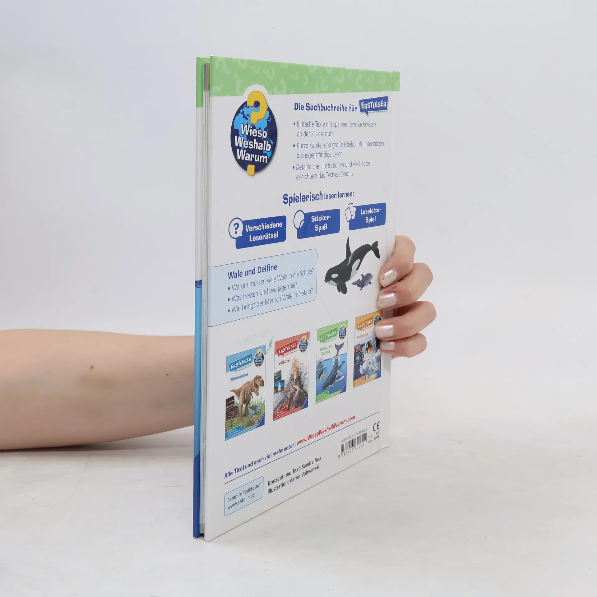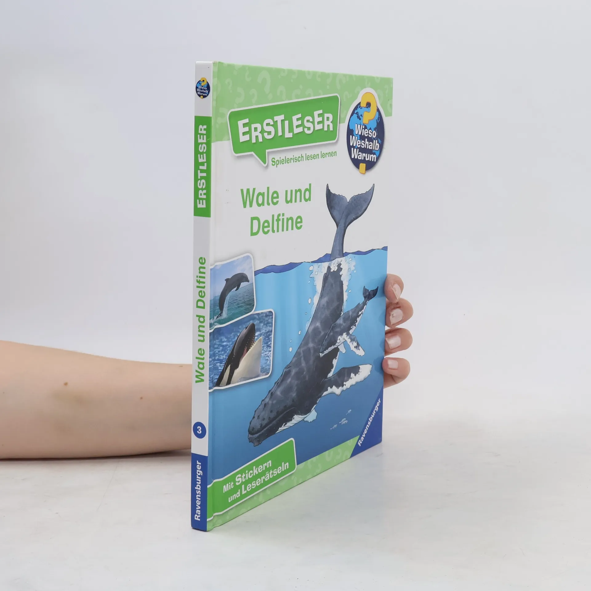 Wie schlafen Wale? Was können wir von ihnen lernen? Wodurch sind Wale und Delfine gefährdet? All das finden Erstleser nun Zeile für Zeile selbstständig heraus, indem sie mit diesem Band in die Welt der Meeressäuger abtauchen. Einfache und kurze Texte machen das Selberlesen kinderleicht. Anschauliche Illustrationen und Fotos unterstützen dabei. Und dank unterschiedlicher Rätsel und Sticker gelingt das Lesen ganz spielerisch. Wieso? Weshalb? Warum? Erstleser Die Sachbuchreihe für Kinder ab der 2. Lesestufe Lesetraining, Sachwissen und Spielspaß in einem! Mit der Reihe Wieso? Weshalb? Warum? Erstleser erschließen sich Kinder ihre Lieblingsthemen selbst. In vier Kapiteln beantworten die Bücher brennende Kinderfragen in kurzen, leicht verständlichen Sätzen. Wie lebt man auf einer Raumstation? Welche Sprache sprechen Wale? Wie gefährlich ist ein Vulkan? Illustrationen und Fotos helfen den Kindern dabei, das Gelesene zu verstehen. Zusätzlich gibt es am Ende jedes Kapitels Buchstaben- und Kreuzworträtsel, Suchbilder, Sudokus und vieles mehr. Ganze acht Seiten mit unterschiedlichsten Rätseln und ein Lesequiz laden zum Knobeln ein. Ein Leselotto-Spiel hilft beim Verständnis schwieriger Wörter. Auf einer Stickerseite zeigen Texte, wo welcher Aufkleber hingehört. Spielerisch lesen lernen wird hier großgeschrieben.