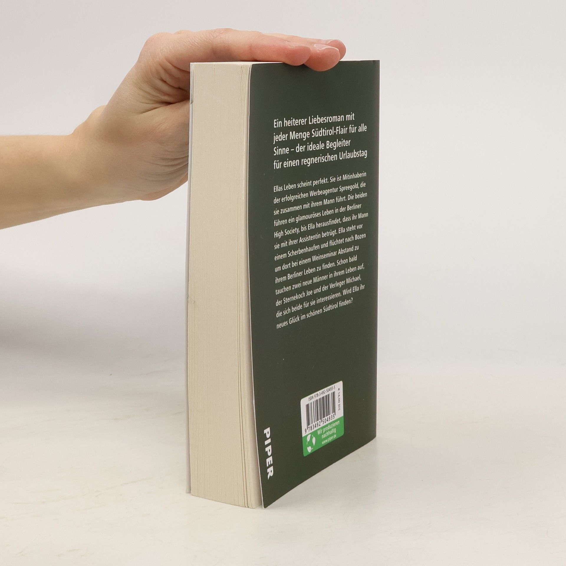 Ein heiterer Liebesroman mit jeder Menge Südtirol-Flair für alle Sinne. Für alle Fans von Petra Hülsmann und Michael Böckler – der ideale Begleiter für einen regnerischen UrlaubstagEllas Leben scheint perfekt. Sie ist Mitinhaberin der erfolgreichen Werbeagentur Spreegold, die sie zusammen mit ihrem Mann führt. Die beiden führen ein glamouröses Leben in der Berliner High Society, bis Ella herausfindet, dass ihr Mann sie mit ihrer Assistentin betrügt. Ella steht vor einem Scherbenhaufen und flüchtet nach Bozen um dort bei einem Weinseminar Abstand zu ihrem Berliner Leben zu finden. Schon bald tauchen zwei neue Männer in ihrem Leben auf, der Sternekoch Joe und der Verleger Michael, die sich beide für Ella interessieren. Wie wird sich Ella entscheiden und findet sie ihr neues Glück im schönen Südtirol?