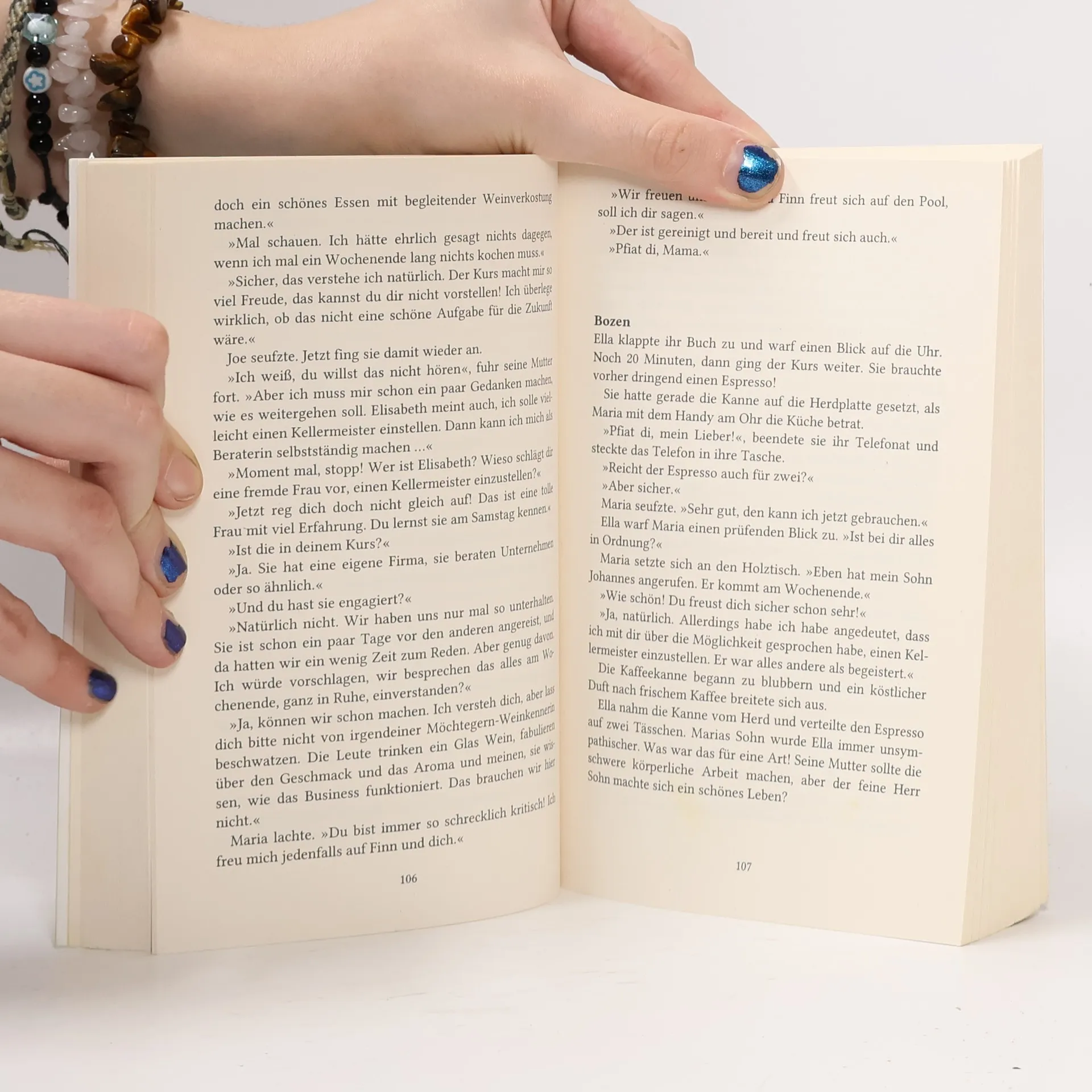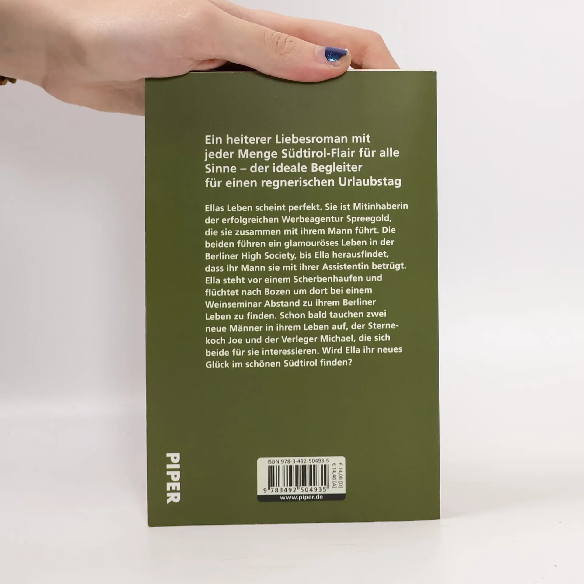 Ein heiterer Liebesroman mit jeder Menge Südtirol-Flair für alle Sinne. Für alle Fans von Petra Hülsmann und Michael Böckler – der ideale Begleiter für einen regnerischen UrlaubstagEllas Leben scheint perfekt. Sie ist Mitinhaberin der erfolgreichen Werbeagentur Spreegold, die sie zusammen mit ihrem Mann führt. Die beiden führen ein glamouröses Leben in der Berliner High Society, bis Ella herausfindet, dass ihr Mann sie mit ihrer Assistentin betrügt. Ella steht vor einem Scherbenhaufen und flüchtet nach Bozen um dort bei einem Weinseminar Abstand zu ihrem Berliner Leben zu finden. Schon bald tauchen zwei neue Männer in ihrem Leben auf, der Sternekoch Joe und der Verleger Michael, die sich beide für Ella interessieren. Wie wird sich Ella entscheiden und findet sie ihr neues Glück im schönen Südtirol?