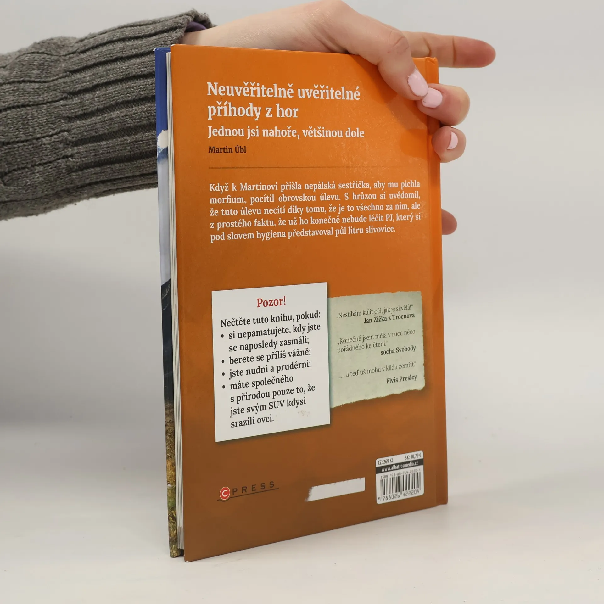 Když k Martinovi přišla nepálská sestřička, aby mu píchla morfium, pocítil obrovskou úlevu. S hrůzou si uvědomil, že tuto úlevu necítí díky tomu, že je to všechno za ním, ale z prostého faktu, že už ho konečně nebude léčit PJ, který si pod slovem hygiena představoval půl litru slivovice. Pozor! Nečtěte tuto knihu, pokud: * si nepamatujete, kdy jste se naposledy zasmáli; * berete se příliš vážně; * jste nudní a prudérní; * máte společného s přírodou pouze to, že jste svým SUV kdysi srazili ovci. „Nestíhám kulit oči, jak je skvělá!“ Jan Žižka z Trocnova „Konečně jsem měla v ruce něco pořádného ke čtení.“ Socha Svobody „… a teď už mohu v klidu zemřít.“ Elvis Presley