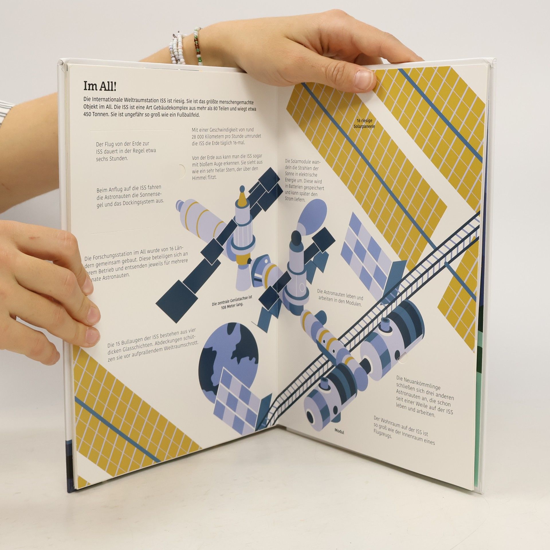 In diesem Sach- und Spielbuch mit 20 Klappen und Spielelementen begleitet der Leser drei Astronauten auf ihre Reise ins All. Man erfährt, wie Astronauten trainiert werden, wie eine Rakete funktioniert und kann sich die Internationale Raumstation ISS von innen ansehen. Ein spannender Ausflug für kleine Weltraumforscher!