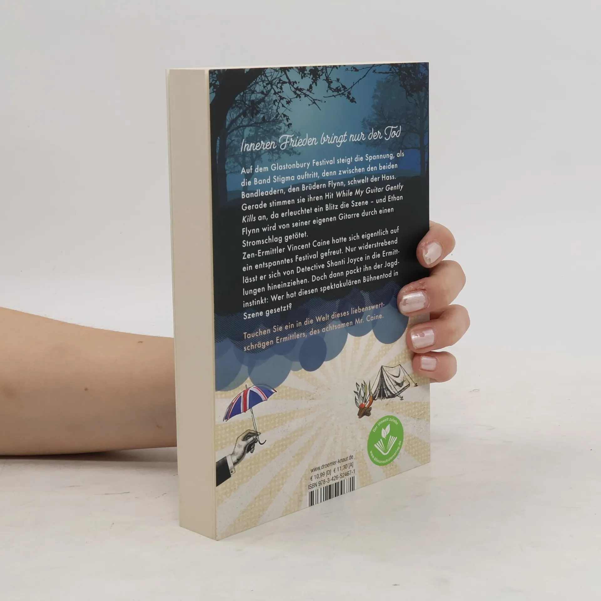 Buddhismus, Liebe, Kunst und Mord: »Der achtsame Mr. Caine und das allerletzte Lied«, geschrieben von Laurence Anholt, ist ein charmanter englischer Krimi um einen buddhistischen Ermittler. Auf dem Glastonbury Festival steigt die Spannung, als die Band »Stigma« auftritt, denn zwischen ihren beiden Anführern, den Flynn-Brüdern, schwelt der Hass. Gerade als sie ihren Hit »While My Guitar Gently Kills« anstimmen, erleuchtet ein Blitz die Szene – und Ethan Flynn wird von seiner eigenen Gitarre durch einen Stromschlag getötet. Unversehens reißt es DI Vincent Caine aus seinem selbstvergessenen Tanz. Dann taucht auch schon seine bissige Partnerin DI Shanti Joyce bei dem Festival auf. Bald arbeitet sich das ungleiche Ermittlerduo durch den Festival-Schlamm und eine schwindelerregende Anzahl einander widersprechender Aussagen: von Bodyguards, bewusstseinserweiterten Roadies und einem zutiefst verbitterten Bruder. Gegen ihren Willen muss Shanti die Toilette mit allen anderen und das Zelt ausgerechnet mit Vincent Caine teilen, während die beiden versuchen herauszufinden, wer diesen spektakulären Bühnen-Tod in Szene gesetzt haben könnte … Tauchen Sie ein in die Welt dieser charmanten englischen Krimi-Reihe: Im ersten Band, »Der achtsame Mr. Caine und die Tote im Tank«, klärt der buddhistische Ermittler den Mord an einer berühmt-berüchtigten Künstlerin auf.