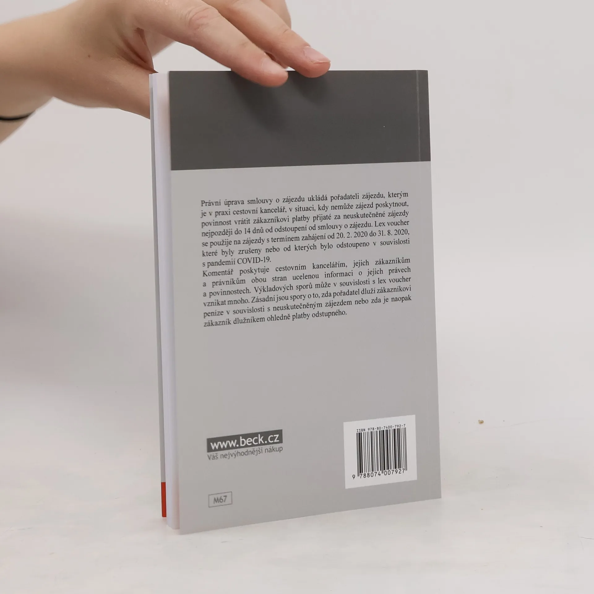 Právní úprava smlouvy o zájezdu ukládá pořadateli zájezdu, kterým je v praxi cestovní kancelář, v situaci, kdy nemůže zájezd poskytnout, povinnost vrátit zákazníkovi platby přijaté za neuskutečněné zájezdy nejpozději do 14 dnů od odstoupení od smlouvy o zájezdu. Lex voucher se použije na zájezdy s termínem zahájení od 20. 2. 2020 do 31. 8. 2020, které byly zrušeny nebo od kterých bylo odstoupeno v souvislosti s pandemií COVID-19. Komentář poskytuje cestovním kancelářím, jejich zákazníkům a právníkům obou stran ucelenou informaci o jejich právech a povinnostech. Výkladových sporů může v souvislosti s lex voucher vznikat mnoho. Zásadní jsou spory o to, zda pořadatel dluží zákazníkovi peníze v souvislosti s neuskutečněným zájezdem nebo zda je naopak zákazník dlužníkem ohledně platby odstupného.