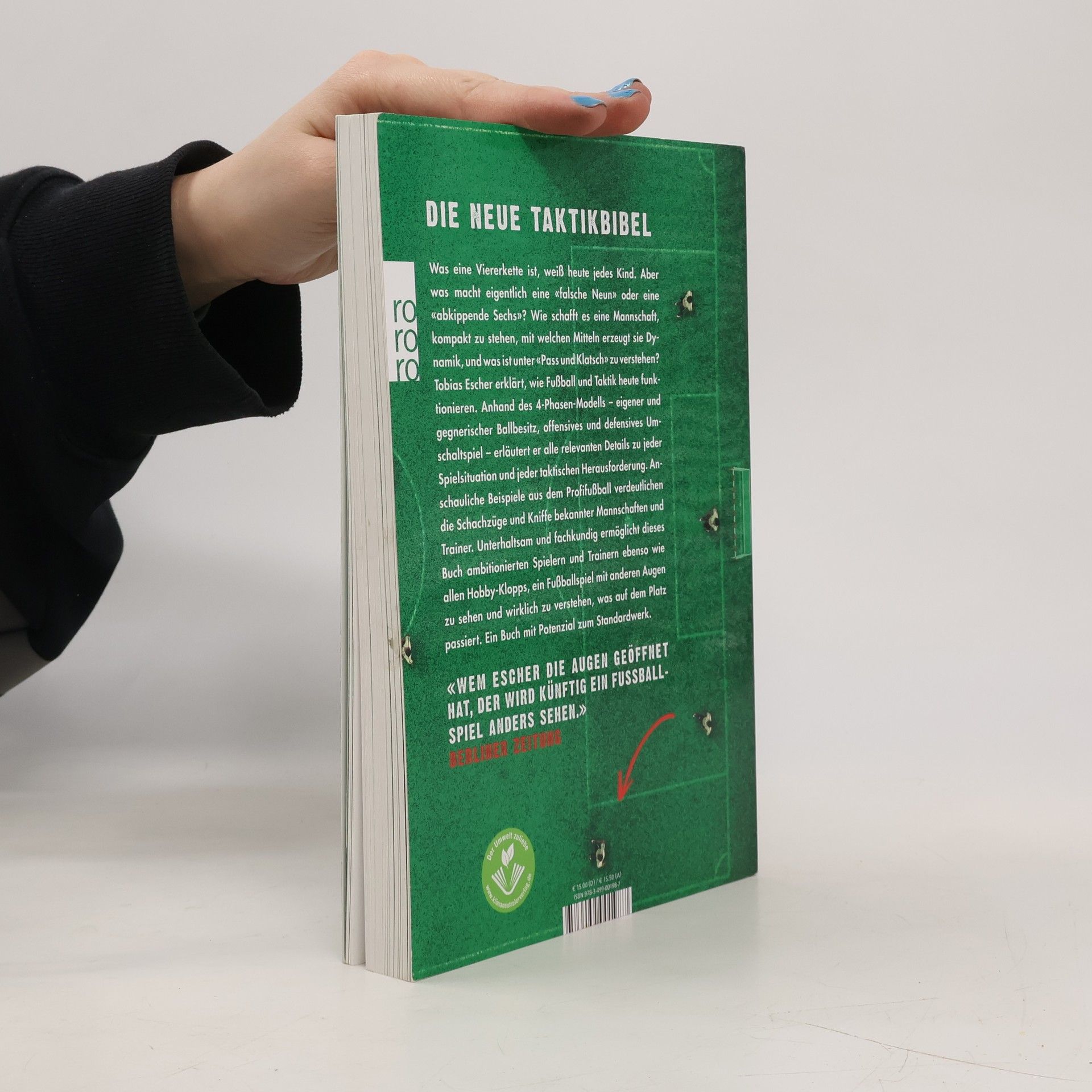 Die neue Tobias Escher erklärt, wie Fußball und Taktik heute funktionieren. Was eine Viererkette ist, weiß heute jedes Kind. Aber was macht eigentlich eine «falsche Neun» oder eine «abkippende Sechs»? Wie schafft es eine Mannschaft, kompakt zu stehen, mit welchen Mitteln erzeugt sie Dynamik, und was ist unter «Pass und Klatsch» zu verstehen?Anhand des 4-Phasen-Modells – eigener und gegnerischer Ballbesitz, offensives und defensives Umschaltspiel – erläutert Tobias Escher alle relevanten Details zu jeder Spielsituation und jeder taktischen Herausforderung. Anschauliche Beispiele aus dem Profifußball verdeutlichen die Schachzüge und Kniffe bekannter Mannschaften und Trainer. Unterhaltsam und fachkundig ermöglicht dieses Buch ambitionierten Spielern und Trainern ebenso wie allen Hobby-Klopps, ein Fußballspiel mit anderen Augen zu sehen und wirklich zu verstehen, was auf dem Platz passiert. Ein Buch mit Potenzial zum Standardwerk.