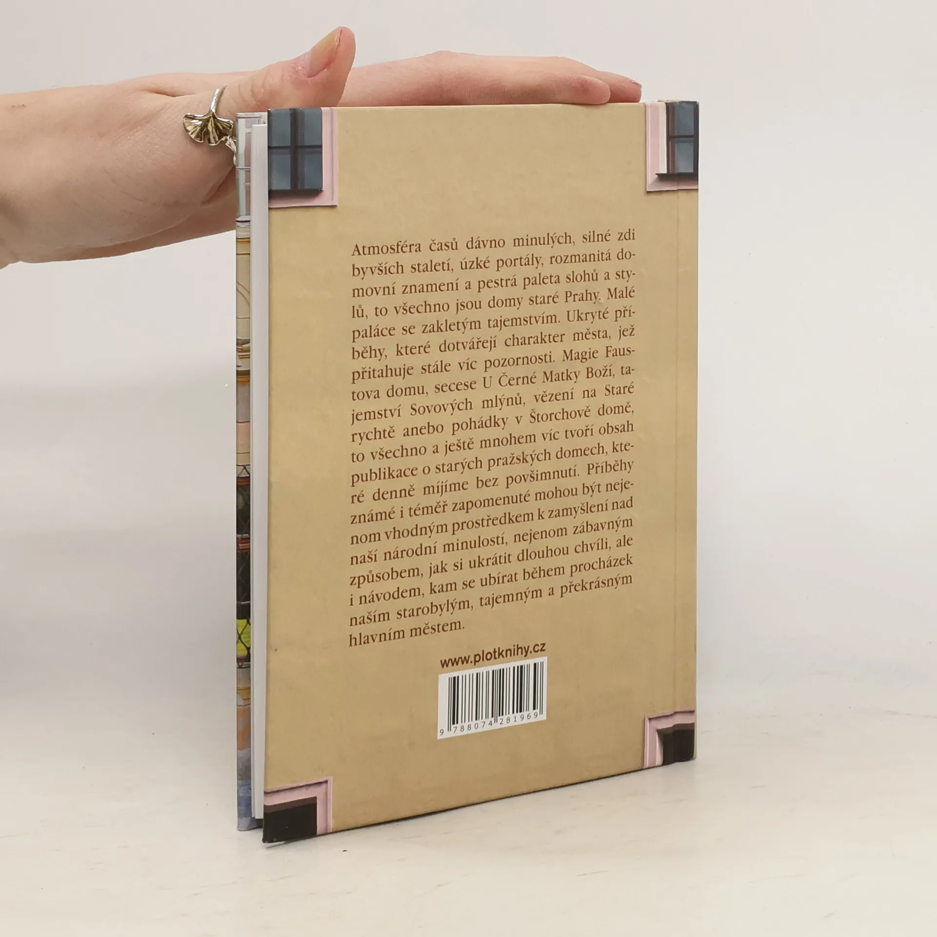 Atmosféra časů dávno minulých, silné zdi byvších staletí, úzké portály, rozmanitá domovní znamení a pestrá paleta slohů a stylů, to všechno jsou domy staré Prahy. Malé paláce se zakletým tajemstvím. Ukryté příběhy, které dotvářejí charakter města, jež přitahuje stále víc pozornosti. Magie Faustova domu, secese U Černé Matky Boží, tajemství Sovových mlýnů, vězení na Staré rychtě anebo pohádky v Štorchově domě, to všechno a ještě mnohem víc tvoří obsah publikace o starých pražských domech, jež denně míjíme bez povšimnutí. Příběhy známé i téměř zapomenuté mohou být nejenom vhodným prostředkem k zamyšlení nad naší národní minulostí, nejenom zábavným způsobem, jak si ukrátit dlouhou chvíli, ale i návodem, kam se ubírat během procházek naším starobylým, tajemným a překrásným hlavním městem.