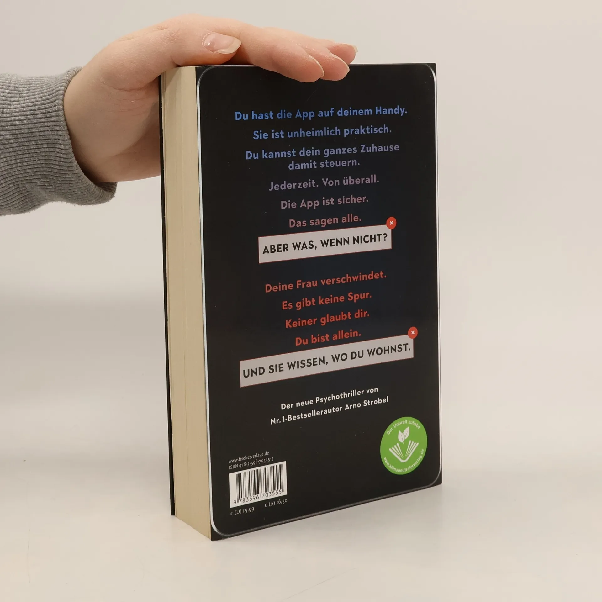 Du hast die App auf deinem Handy. Sie macht dein Zuhause sicherer. Doch nicht nur die App weiß, wo du wohnst ...Der neue Psycho-Thriller von Nr. 1-Bestseller-Autor Arno Strobel Es klingt fast zu gut, um wahr zu sein. Hamburg-Winterhude, ein Haus mit Smart Home, alles ganz einfach per App steuerbar, jederzeit, von überall. Und dazu absolut sicher. Hendrik und Linda sind begeistert, als sie einziehen. So haben sie sich ihr gemeinsames Zuhause immer vorgestellt. Aber dann verschwindet Linda eines Nachts. Es gibt keine Nachricht, keinen Hinweis, nicht die geringste Spur. Die Polizei ist ratlos, Hendrik kurz vor dem Durchdrehen. Konnte sich in jener Nacht jemand Zutritt zum Haus verschaffen? Und wenn ja, warum hat die App nicht sofort den Alarm ausgelöst? Hendrik fühlt sich mehr und mehr beobachtet. Zu recht, denn nicht nur die App weiß, wo er wohnt … »Bei Arno Strobels Thrillern brauchen Sie kein Lesezeichen, man kann sie sowieso nicht aus der Hand legen. Packend und nervenzerreißend!« Sebastian Fitzek