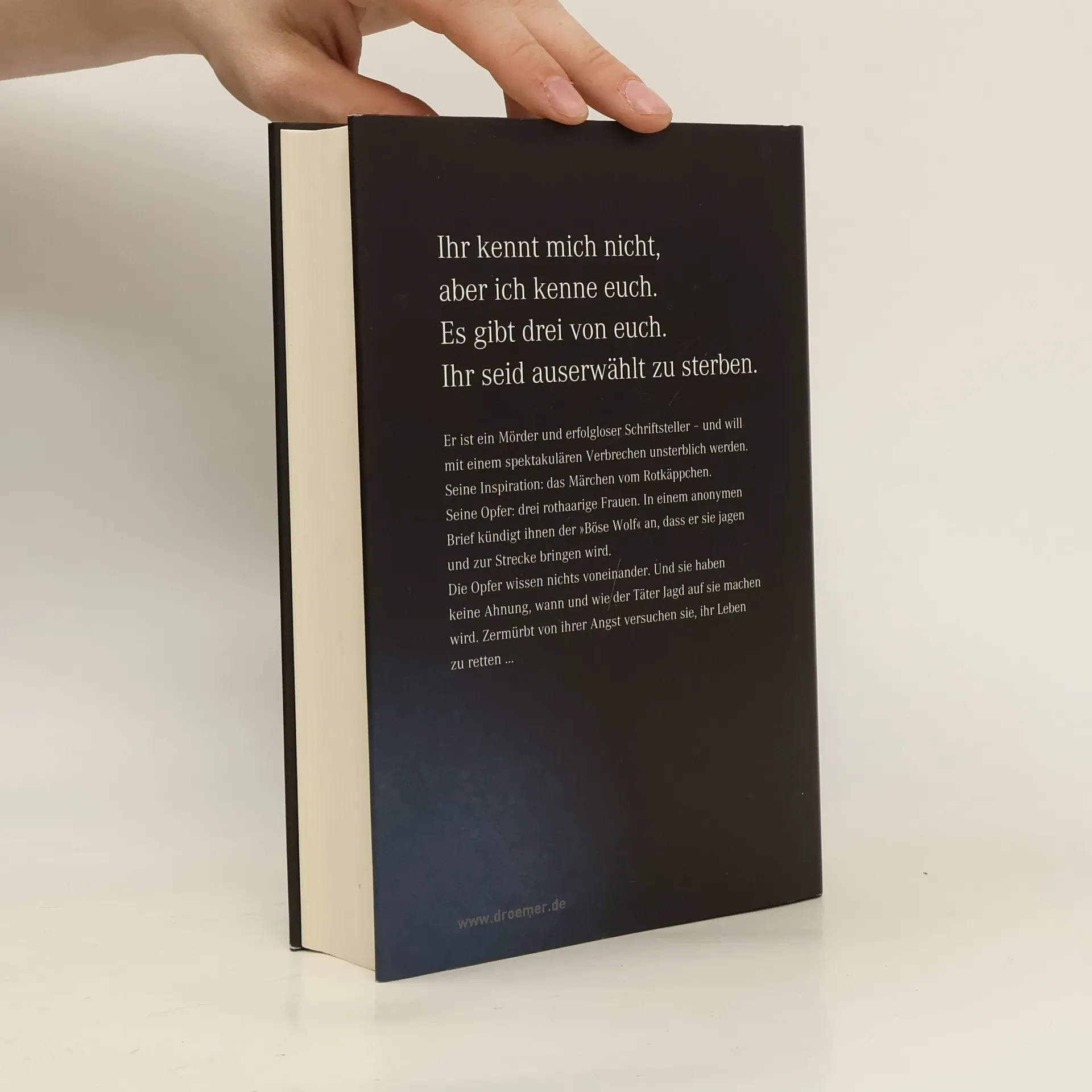 Er ist ein Mörder und erfolgloser Schriftsteller – und will mit einem spektakulären Verbrechen unsterblich werden. Seine Inspiration: das Märchen vom “Rotkäppchen”. Seine Opfer: drei rothaarige Frauen. In einem anonymen Brief kündigt ihnen der „böse Wolf“ an, dass er sie jagen und zur Strecke bringen wird Die Opfer wissen nichts voneinander. Und sie haben keine Ahnung, wann und wie der Täter Jagd auf sie machen wird. Zermürbt von ihrer Angst versuchen sie, ihr Leben zu retten ...