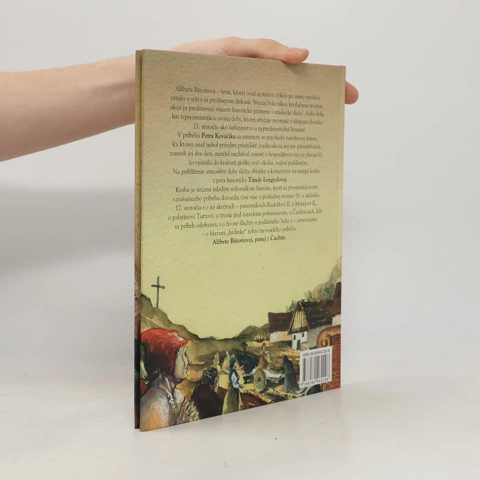 Alžbeta Bátoriová - žena, ktorej osud aj štyristo rokov po smrti vyvoláva otázk a stáva sa predmetom diskusií. naozaj bola takou krvilačnou stvorou, akou ju predstavujú viaceré historické pramene i umelecké diela, alebo bola len reprezentantkou svojej doby, ktorej obyčaje rezonujú v chápaní človeka 2. storočia ako šarlatánstvo a nepredstaviteľná krutosť?V príbehu Petra Kováčika sa stretnete so psychicky narušenou ženou, ku ktorej osud nebol priveľmi priateľský (vydávala sa ani nie pätnásťročná, zomreli jej dve deti, manžel nechával starosť o hospodárstvo na jej pleciach), čo vyústilo do krutosti grófky voči okoliu,najmä poddaným.Na priblíženie atmosféry doby slúžia obrázky a komentáre na margu knihy z pera historičky Tundy Lengyelovej.Kniha je určená mladým milovníkom histórie, ktorí sa prostredníctvom vzrušujúceho príbehu dozvedia čosi viac o poslednej tretine 16. a začiatku 17. storočia i o jej aktéroch - panovníkoch Rudolfovi II. a Matejovi II., o palatínovi Turzovi, o živote pod tureckým polmesiacom, o Čachticiach, kde sa príbeh odohráva, i o živote šľachty a poddanéh ľudu a - samozrejme - o hlavnej "hrdinke" tohto neveselého príbehu Alžbete Bátoriovej, panej z Čachtíc.