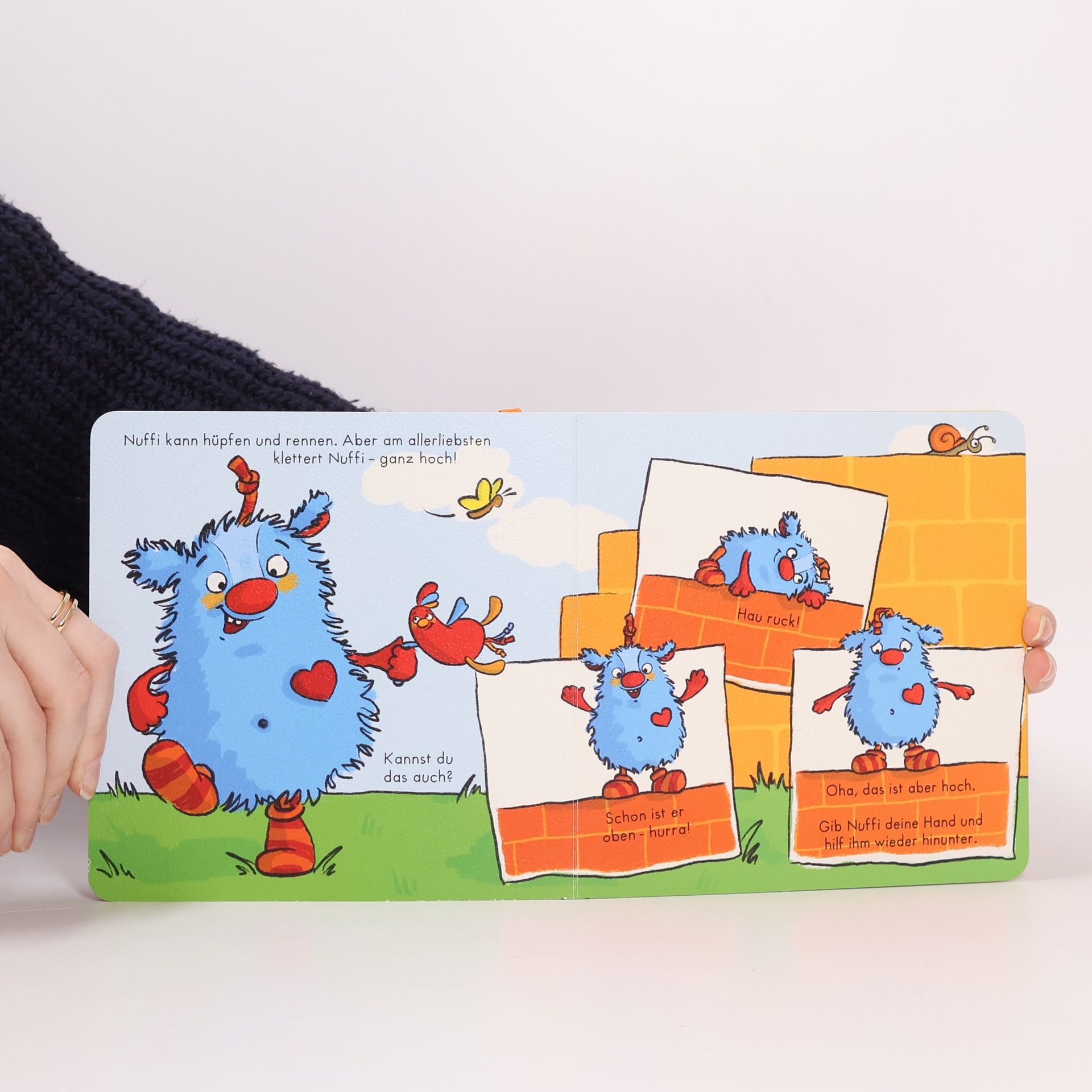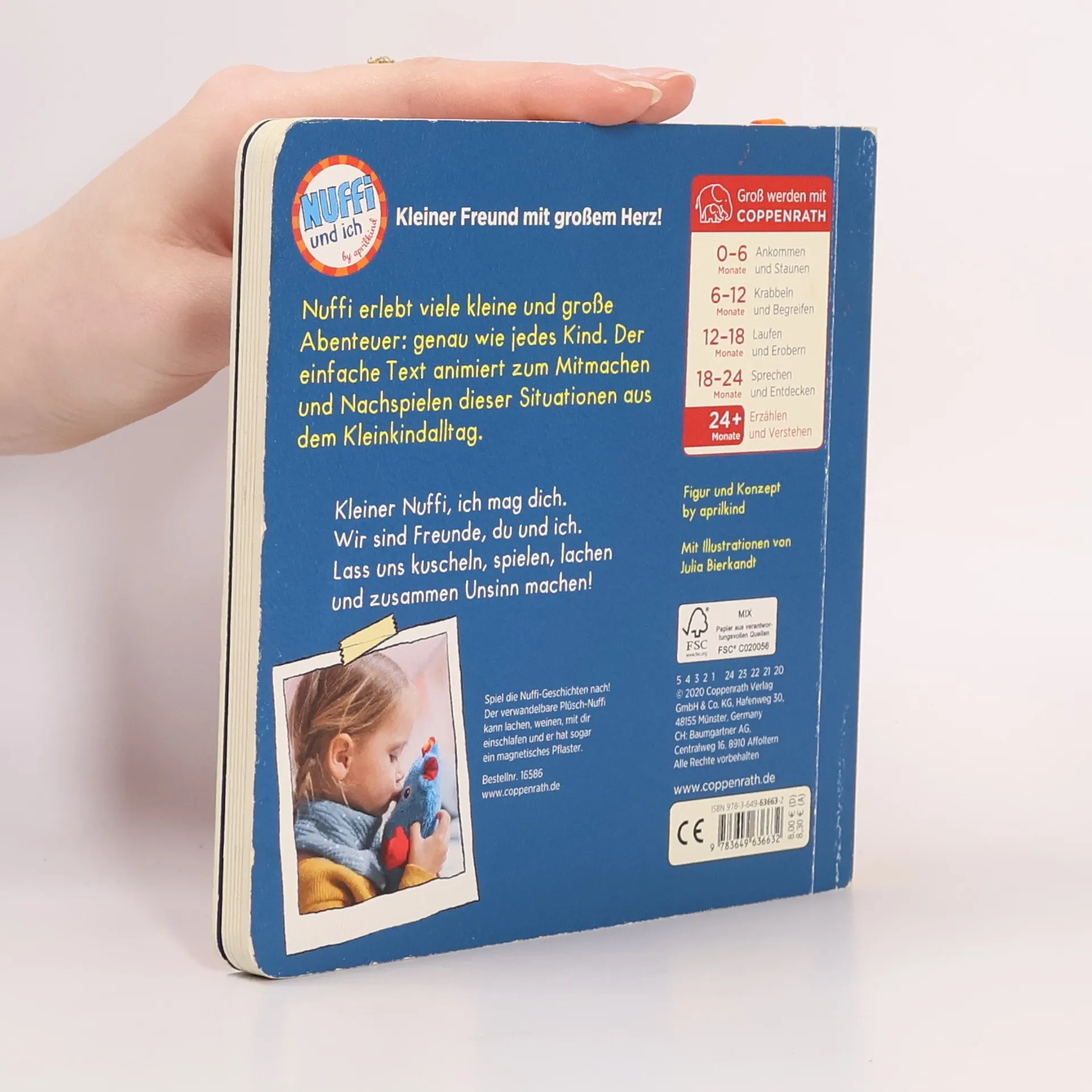 Nuffi und ich! Nuffi erlebt viele kleine und große Abenteuer: genau wie jedes Kind. Der einfache Text animiert zum Mitmachen und Nachspielen dieser Situationen aus dem Kleinkindalltag – so lassen sie sich auch im echten Leben leichter meistern! Kleiner Nuffi, ich mag dich. Wir sind Freunde, du und ich. Lass uns kuscheln, spielen, lachen und zusammen Unsinn machen! Mit dem Plüsch-Nuffi lassen sich die Geschichten besonders gut nachspielen! Bestellnr. 16586 unter www.coppenrath.de und überall wo es gutes Kinderspielzeug gibt!
