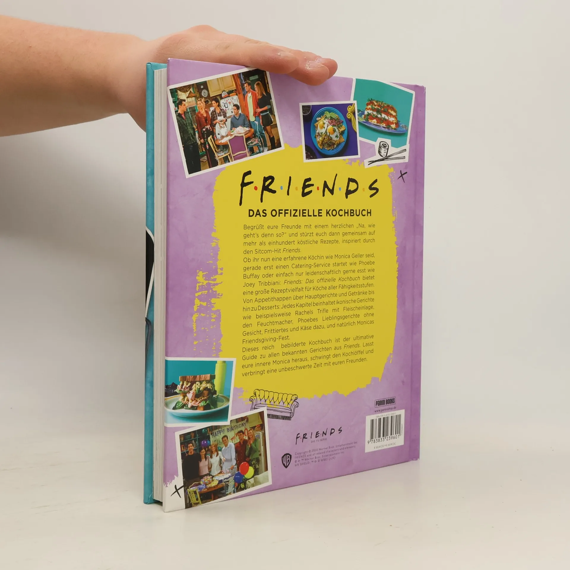 DAS OFFIZIELLE KOCHBUCH Begrüßt eure Freunde mit einem herzlichen „Na, wie geht’s denn so?“ und stürzt euch dann gemeinsam auf mehr als einhundert köstliche Rezepte, inspiriert durch den Sitcom-Hit Friends. Ob ihr nun eine erfahrene Köchin wie Monica Geller seid, gerade erst einen Catering-Service startet wie Phoebe Buffay oder einfach nur leidenschaftlich gerne esst wie Joey Tribbiani: Friends: Das offizielle Kochbuch bietet eine große Rezeptvielfalt für Köche aller Fähigkeitsstufen. Von Appetithappen über Hauptgerichte und Getränke bis hin zu Desserts: Jedes Kapitel beinhaltet ikonische Gerichte wie beispielsweise Rachels Trifle mit Fleischeinlage, den Feuchtmacher, Phoebes Lieblingsgerichte ohne Gesicht, Frittiertes und Käse dazu, und natürlich Monicas Friendsgiving-Fest. Dieses reich bebilderte Kochbuch ist der ultimative Guide zu allen bekannten Gerichten aus Friends. Lasst eure innere Monica heraus, schwingt den Kochlöffel und verbringt eine unbeschwerte Zeit mit euren Freunden.