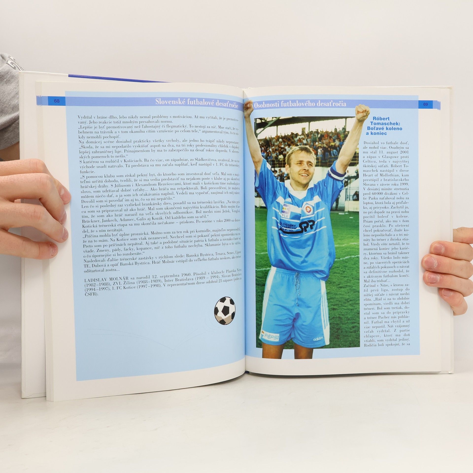 Všetko o slovenskom futbale, desaťročie úspechov, problémov a škandálov, slovo najlepších trénerov, podrobná štatistika, zaujímavé čísla a fakty. Ilustrované fotografiami.