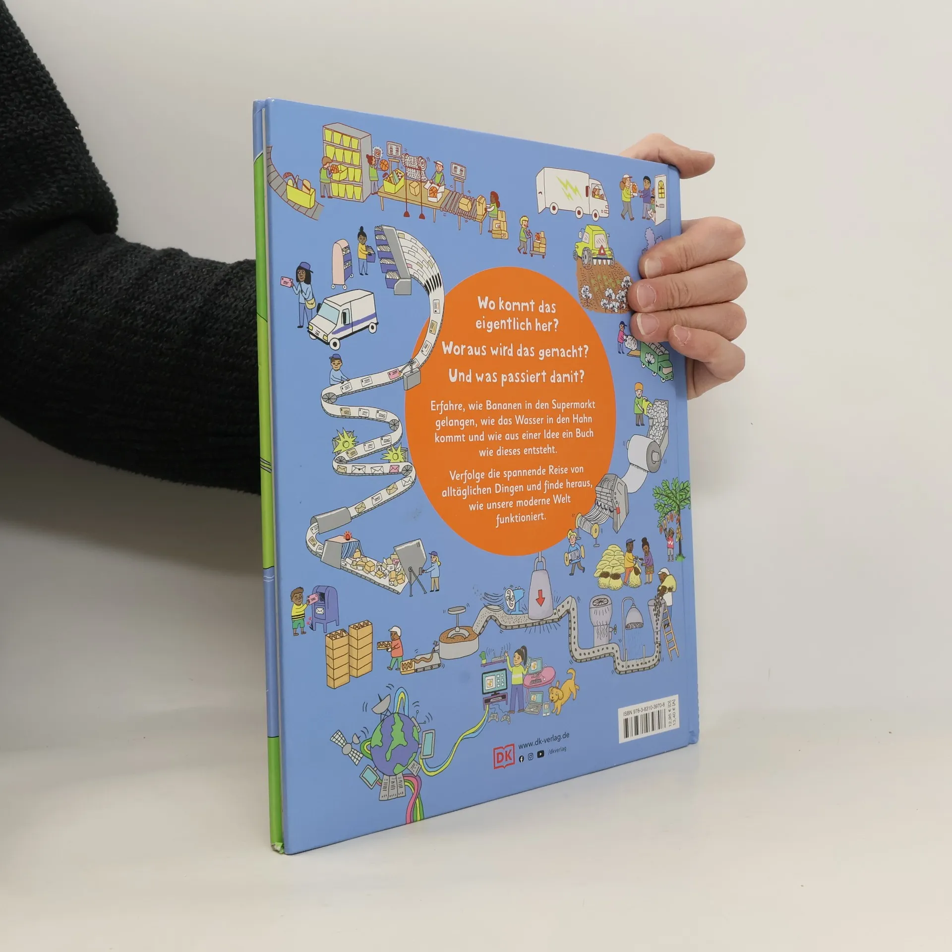 Wo kommt was her? Wie funktioniert unsere Welt? Wie gelangt das Wasser in den Hahn oder die Banane ins Supermarktregal? Dieses einzigartige Kinderbuch erklärt mit coolen, comicartigen Illustrationen auf visuelle Weise, wie die moderne Welt funktioniert. Grosse Zusammenhänge und komplexe Abläufe des Alltags werden durch diesen einmaligen Blick hinter die Kulissen mit tollen Bildern verständlich gemacht. In diesem Sachbuch finden Grundschulkinder Antworten auf all ihre Fragen! (Quelle: Website des Verlags)