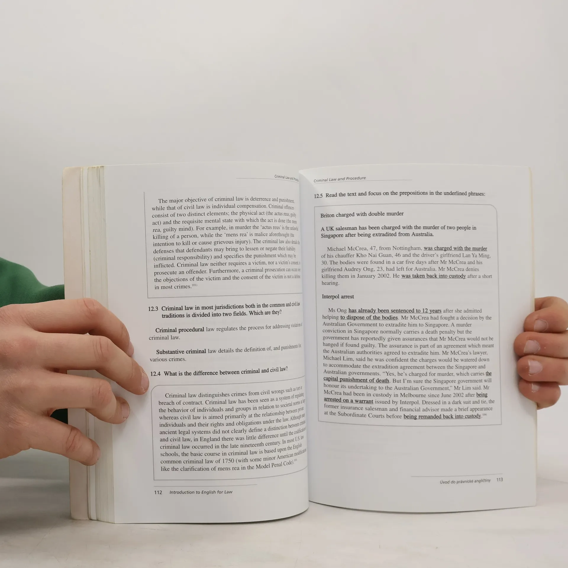 Úvod do právnické angličtiny je učební pomůckou pro studenty vysokých škol, navrženou podle aktuálního učebního plánu. Poskytuje úvod ke studiu odborné angličtiny v kontextu právních disciplín bakalářského programu. Cílem je motivovat studenty k hlubšímu poznání obsahu předmětu prostřednictvím cizího jazyka a seznámit je se základní terminologií a jazykovými strukturami oboru. Po absolvování výuky by měli studenti mít základní znalosti odborné právnické angličtiny zaměřené na jednotlivé moduly práva. Osvojí si terminologii používanou v různých oblastech práva, což jim pomůže porozumět obsahu primární i sekundární právnické literatury v angličtině. Dále se naučí základní akademické dovednosti v čtení, poslechu, mluvení a psaní, a zlepší se v jazyce, zejména v oblastech typických pro odborný styl. Obsah se soustředí na získávání právních informací z anglicky psané literatury, sumarizaci myšlenek odborného textu, definování základních pojmů, analýzu textu z jazykového hlediska a aplikaci jazykových znalostí v kontextu práva.