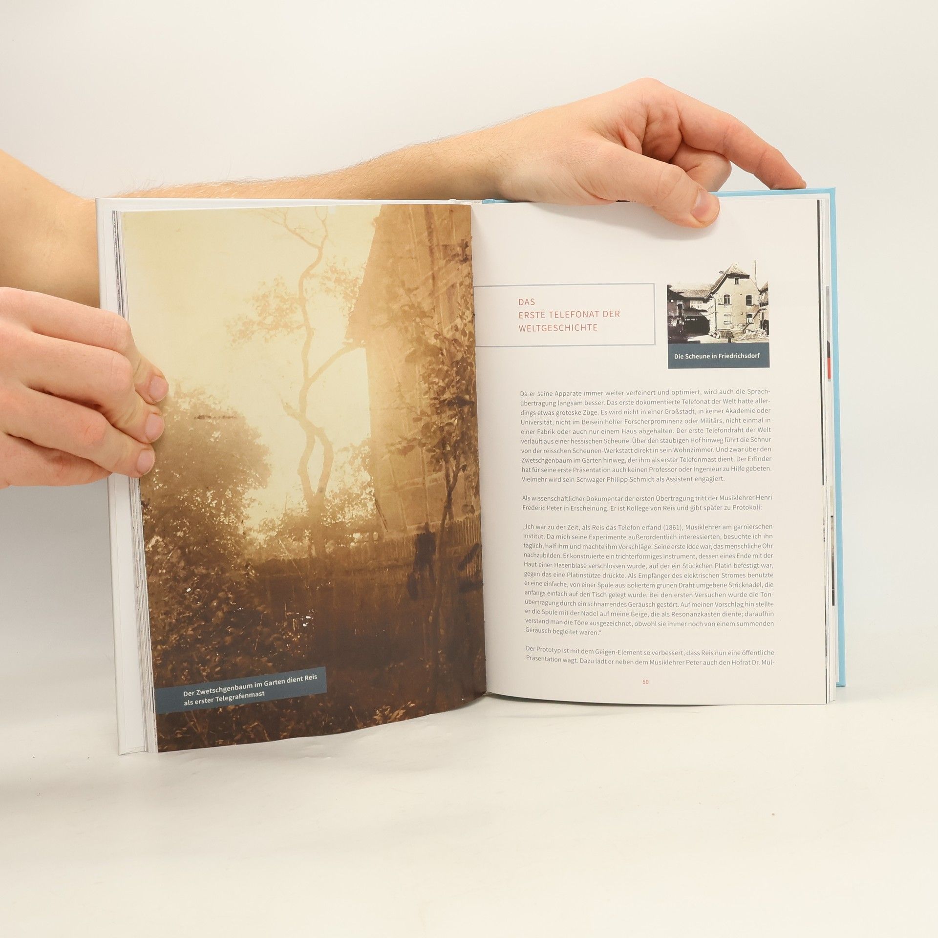 Aus einer Geige, einer Stricknadel und der Blase eines Hasen bastelt Philipp Reis 1861 das erste Fernsprechgerät der Welt. Er nennt seine Erfindung „Telefon“. Die Öffentlichkeit staunt, doch Wissenschaft wie Regenten belächeln den genialen Amateur aus Hessen. Wie kann der nichtstudierte Waisenjunge das schaffen? Wer ist dieser Jahrhunderterfinder wirklich? Wieso wird „Das Pferd frisst keinen Gurkensalat“ der erste Satz, der je durch ein Telefon gesprochen wird? Warum kann Graham Bell das Telefon nach dem Tod von Philipp Reis für sich patentieren lassen? Und wieso ist Reis in Vergessenheit geraten? Dieses reich illustrierte Buch gibt Antworten, erzählt die ganze Lebens- und Erfindungsgeschichte im Detail. Es gibt einem Mann, dem es das Leben schwer gemacht hat, den verdienten Respekt und die Sichtbarkeit zurück. Denn der Erfinder des Telefons heißt nicht Graham Bell, er heißt Philipp Reis.