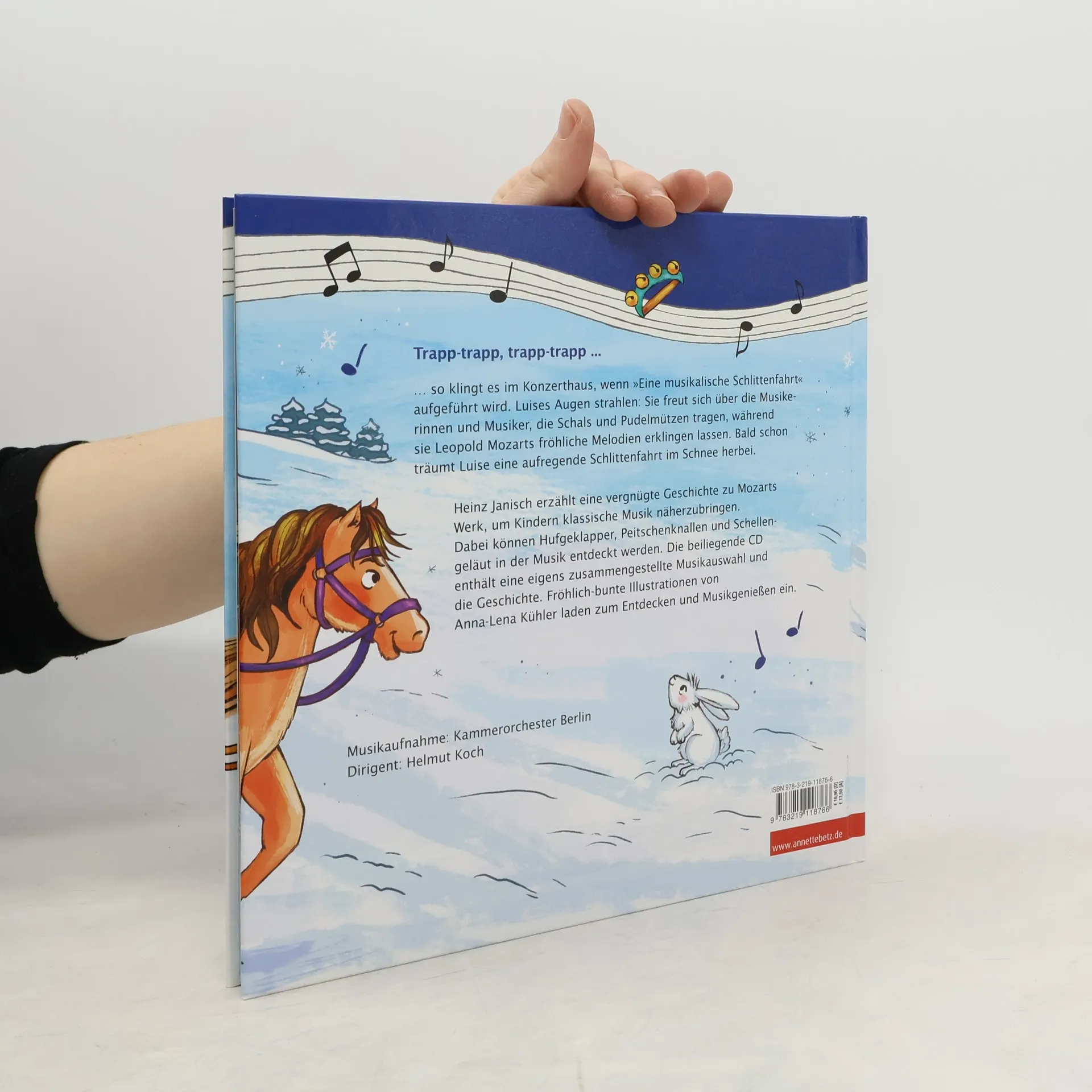Ein Konzertbesuch, so turbulent wie eine Schlittenfahrt: Tauchen Sie mit diesem Bilderbuch ab 3 Jahren in einen Winter voll klassischer Musik – mit Begleit-CD zur musikalischen Früherziehung. So eine Aufregung: Im Konzerthaus wird heute »Eine musikalische Schlittenfahrt« aufgeführt. Luise wartet mit ihren Eltern schon gespannt, da betreten die Musiker endlich die Bühne. Doch was ist das? Alle haben ja Mützen, Schals und dicke Winterjacken an?! Ach so, das ist natürlich für die Schlittenfahrt! Jetzt geht es aber wirklich los und bald schon träumt Luise zur Musik eine aufregende Schlittenfahrt im Schnee herbei. Die erfolgreiche Reihe »Mein erstes Musikbilderbuch« ermöglicht einen kinderleichten Einstieg in die Welt der klassischen Musik. Musik und Text auf der Begleit-CD: Komponist: Leopold Mozart Orchester: Kammerorchester Berlin Dirigent: Helmut Koch Sprecher: Heinz Janisch Laufzeit: ca. 47 Minuten