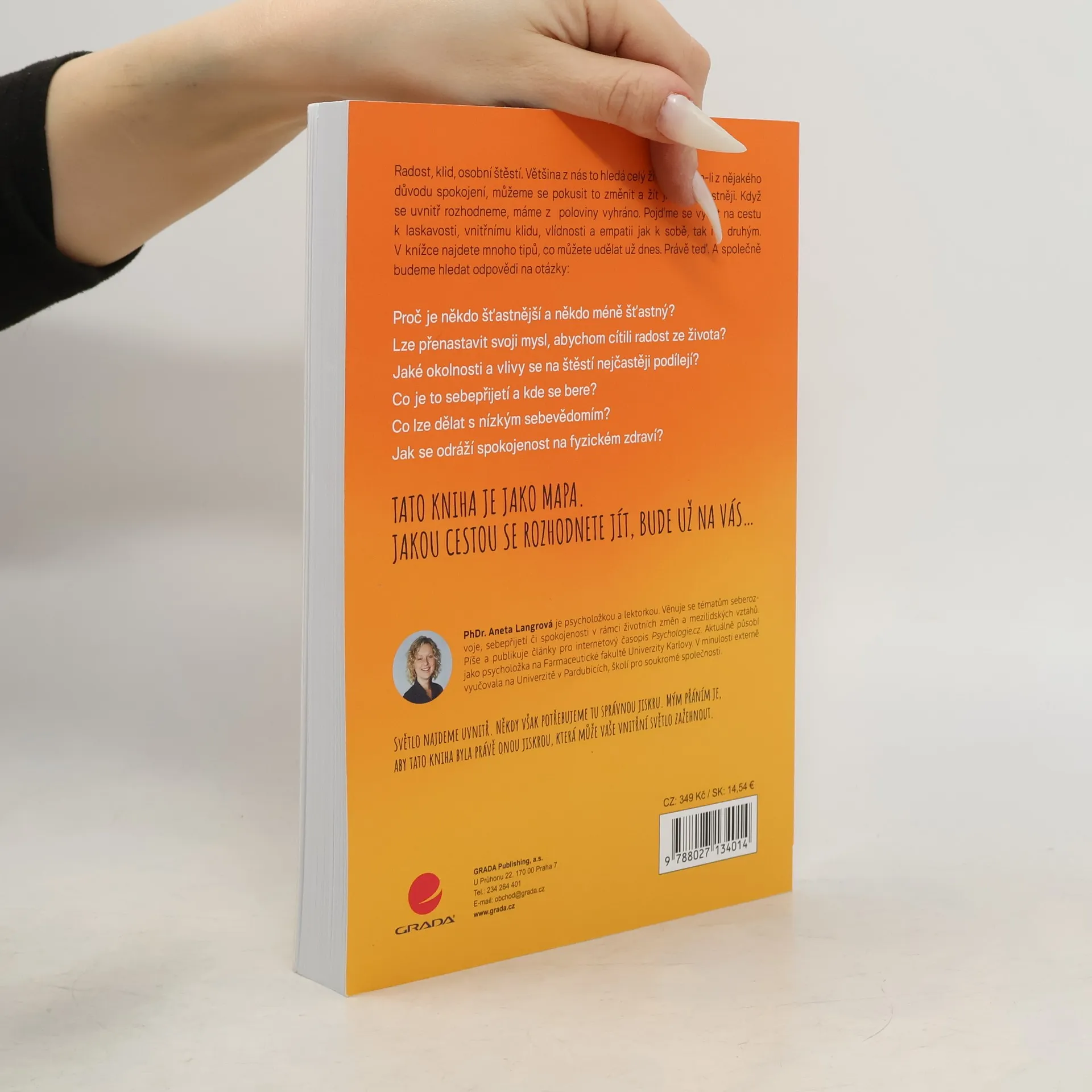Radost, klid, osobní štěstí. Většina z nás to hledá celý život. Nejsme-li z nějakého důvodu spokojení, můžeme se pokusit to změnit a žít jinak – šťastněji. Když se uvnitř rozhodneme, máme z poloviny vyhráno. Pojďme se vydat na cestu k laskavosti, vnitřnímu klidu, vlídnosti a empatii jak k sobě, tak i k druhým. V knížce najdete mnoho tipů, co můžete udělat už dnes. Právě teď. A společně budeme hledat odpovědi na otázky: Proč je někdo šťastnější a někdo méně šťastný? Lze přenastavit svoji mysl, abychom cítili radost ze života? Jaké okolnosti a vlivy se na štěstí nejčastěji podílejí? Co je to sebepřijetí a kde se bere? Co lze dělat s nízkým sebevědomím? Jak se odráží spokojenost na fyzickém zdraví? TATO KNIHA JE JAKO MAPA. JAKOU CESTOU SE ROZHODNETE JÍT, BUDE UŽ NA VÁS…