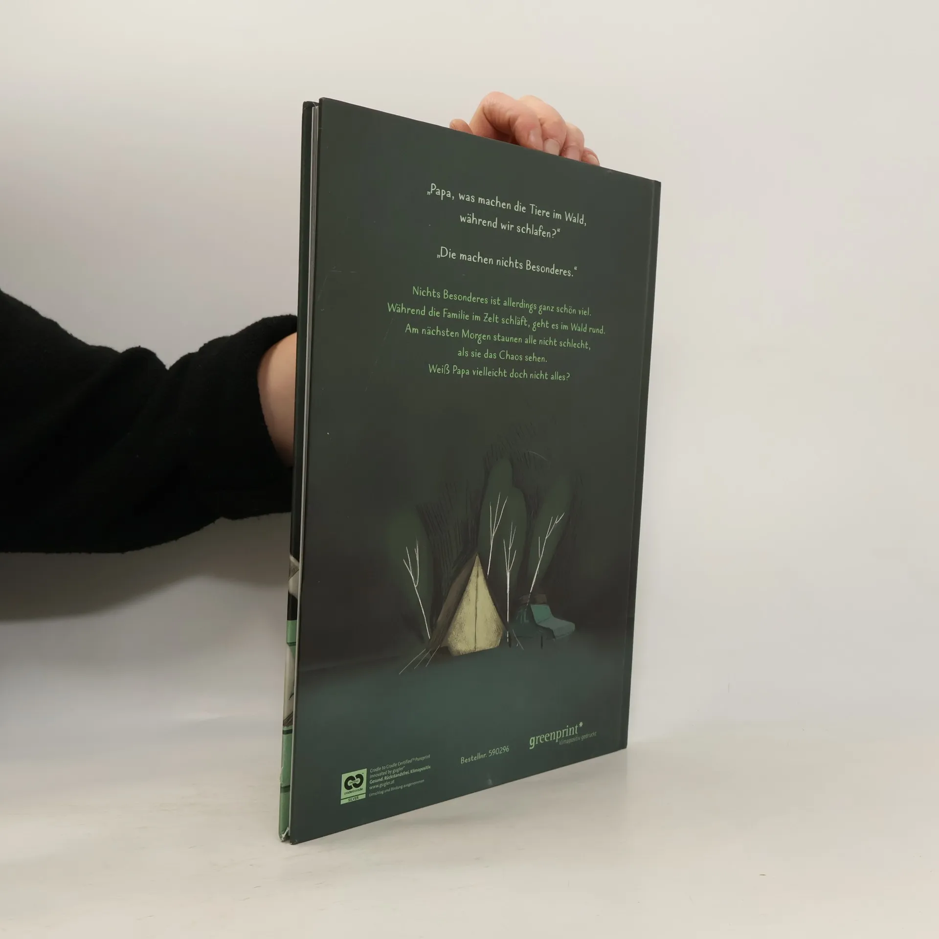 “Papa, was machen die Tiere im Wald, während wir schlafen?”“Die machen nichts Besonderes.”Nichts ist aber ganz schön viel. Während die Familie im Zelt schläft, schaukeln die Fledermäuse im BH, die Stachelschweine liefern sich aufregende Bürstenkämpfe und die Glühwürmchen feiern eine Party. Am nächsten Morgen staunen alle nicht schlecht, als sie das Chaos sehen. Weiß Papa vielleicht doch nicht alles?Wie sehr Vorstellung und Realität voneinander abweichen können, erfährt man in den wahnsinnig witzigen Bildern von France Cormier. Ein Bilderbuch zum Entdecken, schmunzeln und laut loslachen!