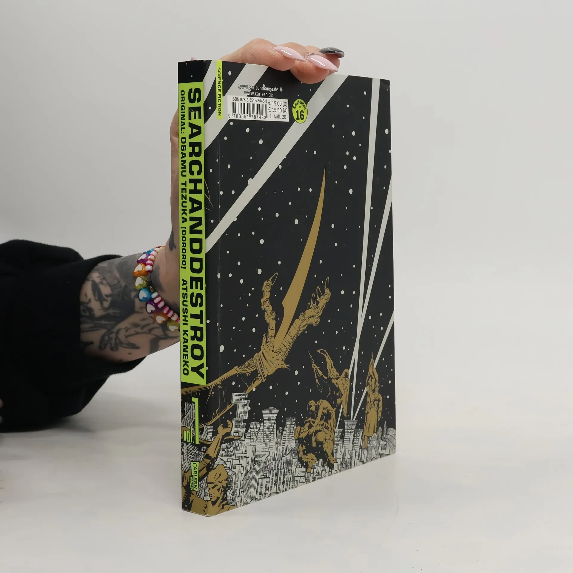 Eine düstere, dystopische Welt voller Korruption und gefährlicher Cyborgs Nach dem Krieg lebt das Waisenmädchen Doro in einer Welt, in der Menschen und Cyborgs auf engem Raum zusammenlesen. Die Straßen sind voller Roboter, die einst als Tötungsmaschinen dienten und nun nicht mehr gebraucht werden. Als Doro eines Nachts von einem Waffenhändler beim Stehlen erwischt wird, hat ihr letztes Stündchen geschlagen. Doch dann erscheint plötzlich Hyaku, ein weiblicher Cyborg. Mit ihren Scherenhänden besiegt sie den Waffenhändler und startet ihren persönlichen Rachefeldzug. Ausgestattet mit übermenschlichen Fähigkeiten und einer unstillbaren Wut, kämpft sie gegen korrupte Mächte. Eine spektakuläre Action-Story beginnt, in der Hyaku sich Stück für Stück zurückholt, was ihr vor vielen Jahren grausam genommen wurde. "Search and destroy" von Atsushi Kaneko ist eine brillante Neuinterpretation der Tezuka-Serie "Dororo", in Form eines retro-futuristischen SciFi-Thrillers. Actiongeladene Science-Fiction-Manga-Serie im Retro-Stil Neuinterpretation des Tezuka-Klassikers "Dororo" Abgeschlossen in 3 Bänden Geeignet für Leser*innen ab 16 Jahren Eine packende Geschichte über die Rache einer Cyborg-Kriegerin - ideal für Sci-Fi- und Action-Manga-Fans!