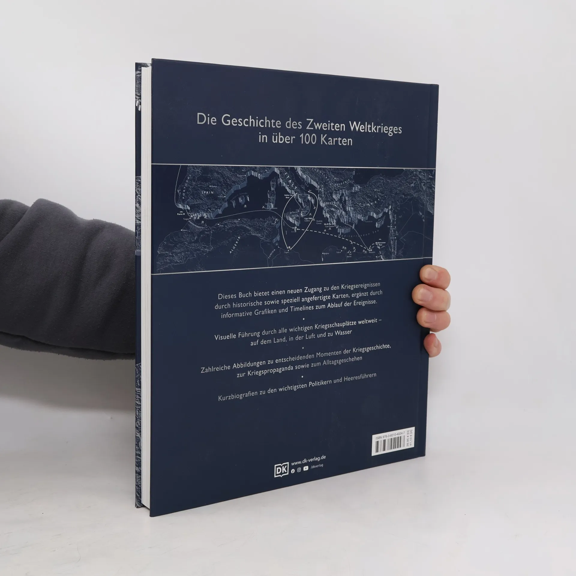 Ein außergewöhnlicher Blick auf den Zweiten Weltkrieg Karte für Karte stellt dieses Buch den schrecklichsten Konflikt der Geschichte visuell dar. Noch nie wurden Abläufe und Hintergründe des Zweiten Weltkriegs in so thematisch vielfältigen Karten und in diesem großen Detailreichtum dargestellt wie in diesem imposanten Nachschlagewerk . Über 100 historische und moderne Karten sowie informative Grafiken nehmen Sie mit in den harten Kriegsalltag, zu den prägendsten Momenten der Kriegsgeschichte und den wichtigsten Heerführern. Eine geografische Reise durch die Geschichte des Zweiten Weltkriegs Dieses Geschichtsbuch ist viel mehr als ein Nachschlagewerk! Mit thematischen Karten erzählt es die Abläufe und Entwicklungen des Krieges mit einem völlig neuen Zugang und macht sie so anschaulich wie nie. Ein umfassender Überblick über alle Kriegsstationen in 5 Kapiteln • Der Weg in den Krieg (1918–1939) • Deutschland auf dem Vormarsch (1939–1941) • Der Krieg weitet sich aus (1942) • Das Blatt wendet sich (1943–1944) • Endphase und Nachkriegszeit (1944–1955) Ein innovativer Zugang zur Geschichte des Zweiten Weltkriegs – verfolgen Sie Karte für Karte die prägendsten Kriegsmomente & Kriegsschauplätze!