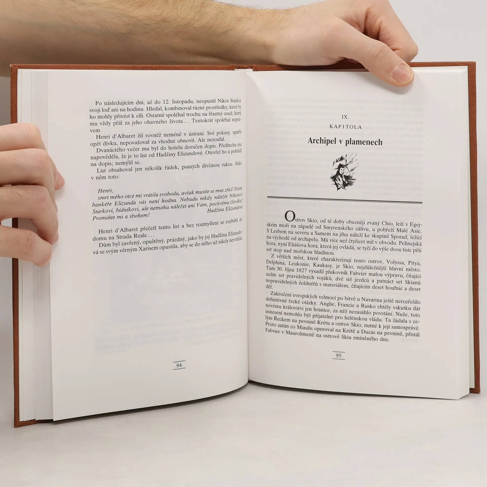 Román se odehrává během řeckého povstání za samostatnost z područí turecké Osmanské říše v letech 1821 až 1829 (Archipelem se v této souvislosti rozumí souostroví v Egejském moři mezi Krétou a Malou Asií). Na pozadí těchto historických událostí sledujeme osudy mladého francouzského námořního důstojníka Henryho d'Albareta, který stojí v boji na straně Řeků. Ten v bitvě proti Turkům utrpí zranění a během své rekonvalescence se zamiluje do okouzlující Hadjine, dcery řeckého bankéře Elizunda z ostrova Korfu. Oba mladí lidé se brzy zasnoubí a chystají svatbu. Hadjine chce však za ženu také námořník Nicolas Starkos, o němž se ví, že je ve spojení s místními piráty...