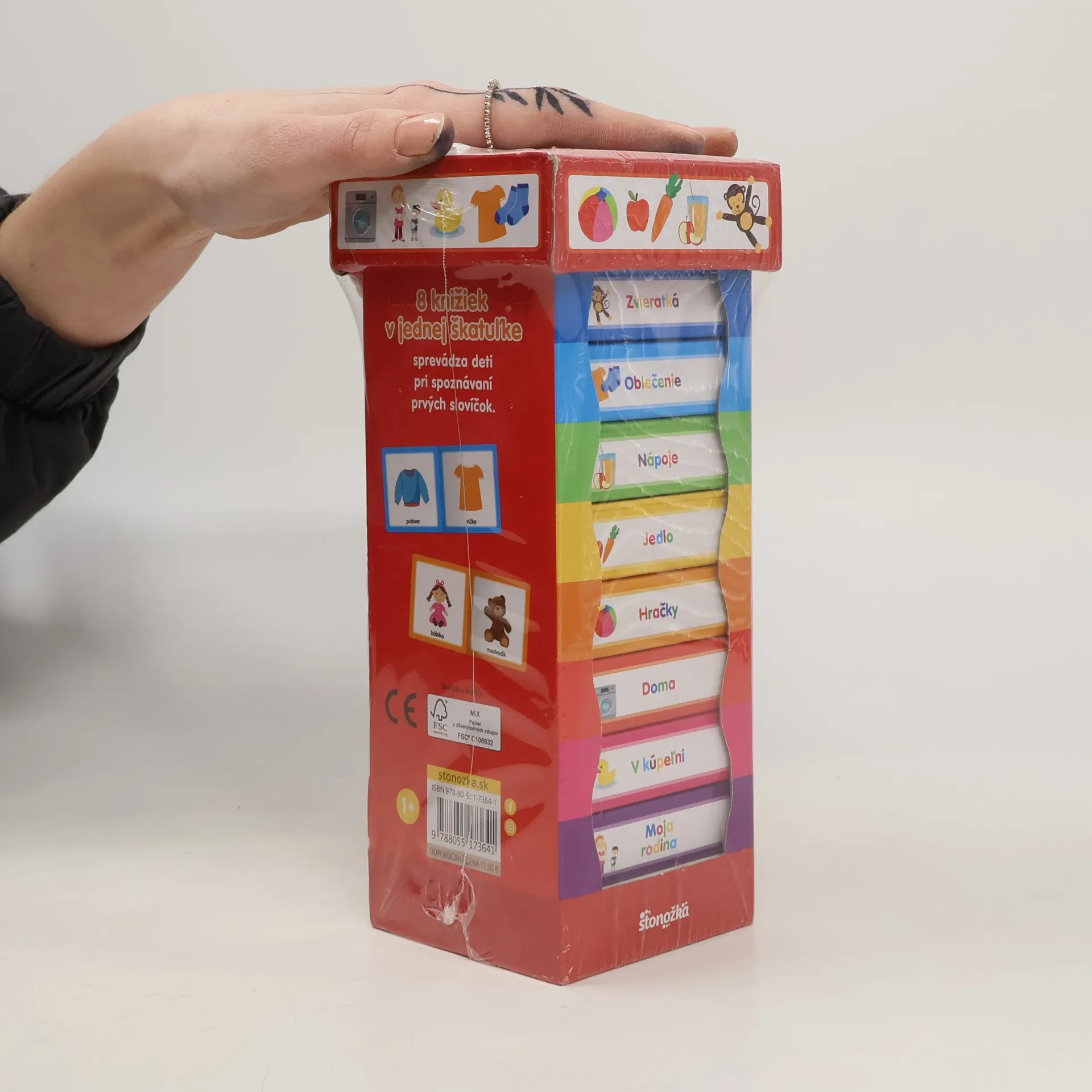 Knižky zo škatuľky - Veci okolo mňa S čím sa rád hrám? Čo mi to mamička oblieka? Ako sa volá moja obľúbená hračka? S pomocou ôsmich knižiek z praktickej škatuľky spoznajú detičky názvy predmetov, s ktorými sa stretávajú každý deň - pestré loptičky, mäkučký pulóver či hravé zvieratká. Rozšíria si slovnú zásobu, precvičia vnímanie okolitého sveta a komunikáciu. Tieto knižky rozvíjajú: Z nemeckého originálu preložila Lenka Sobolíková