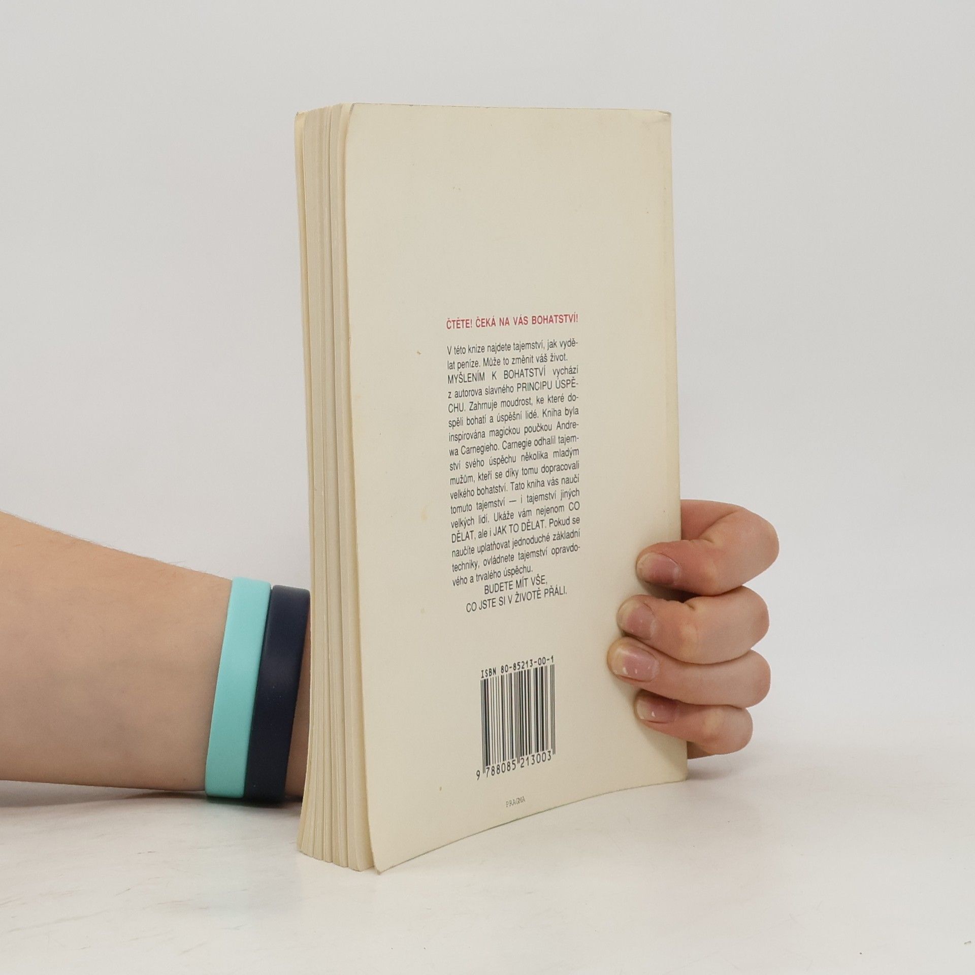 První vydání amerického bestselleru. Kniha nás naučí rozvíjet všechny dobré vlastnosti jako je vůle, rozhodnost, vytrvalost a pevný charakter. Je to návod na bohatství nejenom materiální, ale především bohatství vnitřní. Poukazuje na naše skryté kvality, na náš talent a podává návod, jak ho využít. Dozvíte se, jak si vytvořit správný okruh spolupracovníků, jak podnikat, jak začít, jak vytrvalostí dovést své záměry k úspěšnému konci. Všechno materiální má začátek v myšlence, to je základní idea této knihy od Napoleona Hilla. V této knize najdete tajemství, jak vydělat peníze. Může to změnit váš život. MYŠLENÍM K BOHATSTVÍ vychází z autorova slavného PRINCIPU ÚSPĚCHU. Zahrnuje moudrost, ke které dospěli bohatí a úspěšní lidé. Kniha byla inspirována magickou poučkou Andrewa Carnegieho. Carnegie odhalil tajemství svého úspěchu několika mladým mužům, kteří se díky tomu dopracovali velkého bohatství. Tato kniha vás naučí tomuto tajemství — i tajemství jiných velkých lidí. Ukáže vám nejenom CO DĚLAT, ale i JAK TO DĚLAT. Pokud se naučíte uplatňovat jednoduché základní techniky, ovládnete tajemství opravdového a trvalého úspěchu. BUDETE MÍT VŠE, CO JSTE SI V ŽIVOTĚ PŘÁLI.... celý text