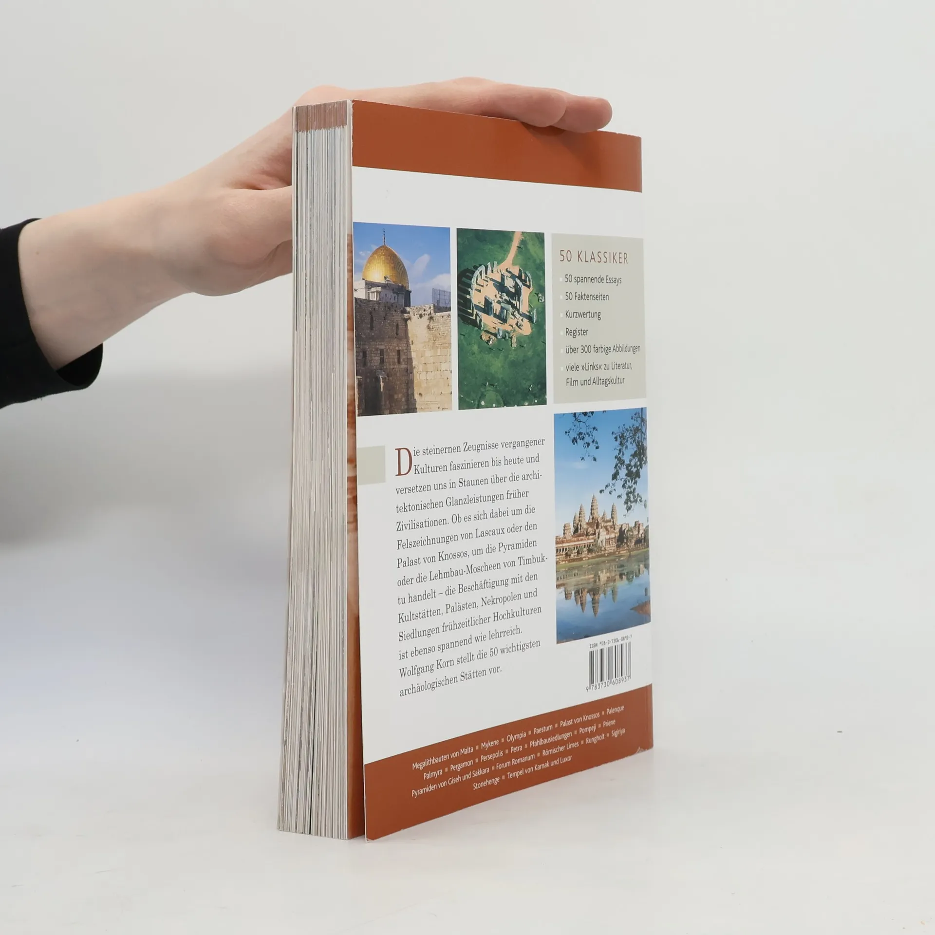 Die steinernen Zeugnisse vergangener Kulturen faszinieren bis heute und versetzen uns in Staunen über die architektonischen Glanzleistungen früher Zivilisationen. Ob es sich dabei um die Felszeichnungen von Lascaux oder den Palast von Knossos, um die Pyramiden oder die Lehmbau-Moscheen von Timbuktu handelt – die Beschäftigung mit den Kultstätten, Palästen, Nekropolen und Siedlungen frühzeitlicher Hochkulturen ist ebenso spannend wie lehrreich. Wolfgang Korn stellt die 50 wichtigsten archäologischen Stätten vor. Ausstattung: durchgehend farbige Abbildungen und Fotos
