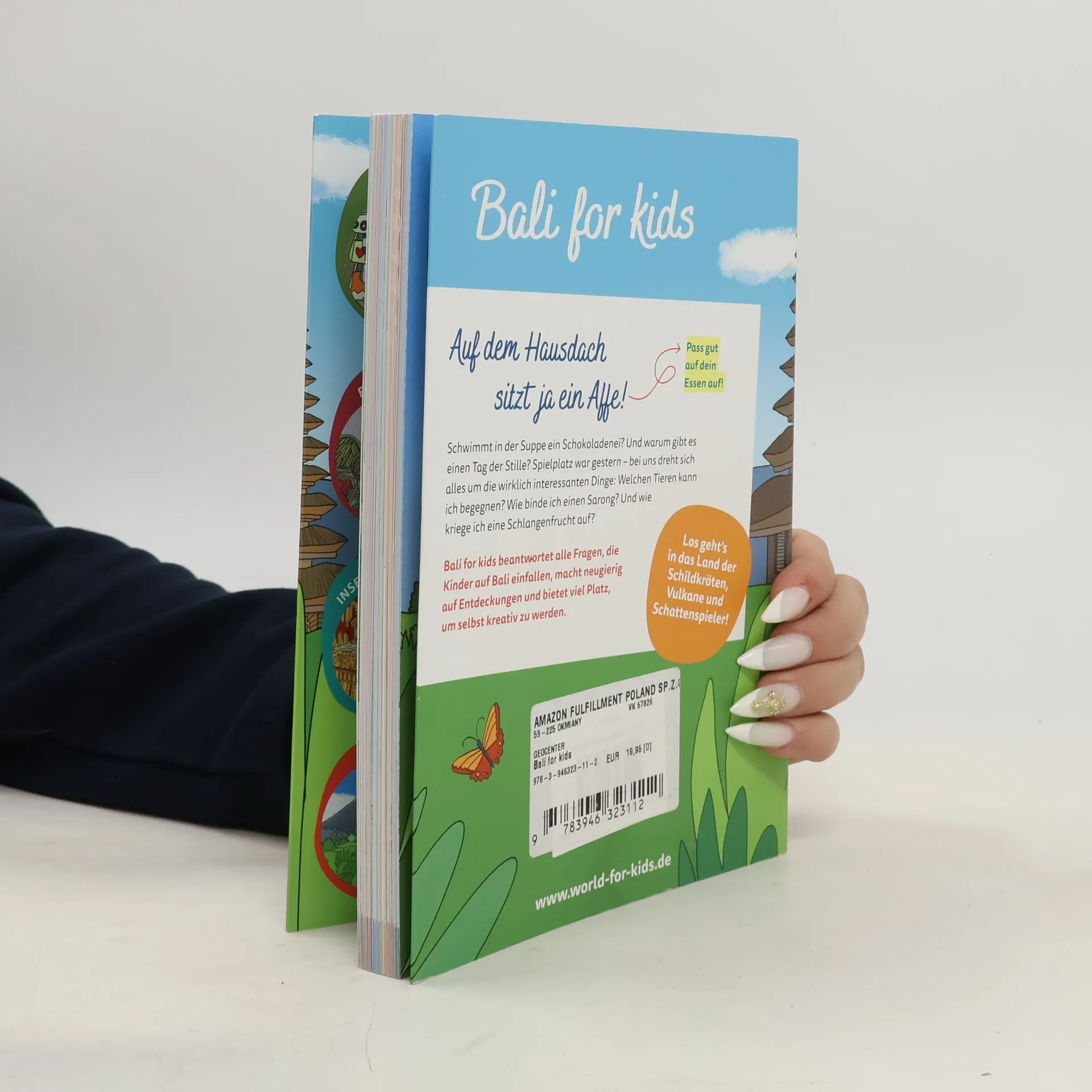Auf dem Hausdach sitzt ja ein Affe! Schwimmt in der Suppe ein Schokoladenei? Und warum gibt es einen Tag der Stille? Spielplatz war gestern – bei uns dreht sich alles um die wirklich interessanten Dinge: Welchen Tieren kann ich begegnen? Wie binde ich einen Sarong? Und wie kriege ich eine Schlangenfrucht auf? Kinderwissen für neugierige Kids über Tiere, Pflanzen und Geschichten aus dem faszinierenden Bali kindgerecht erzählt. Bali for kids beantwortet alle Fragen, die Kinder auf Bali einfallen, macht neugierig auf Entdeckungen und bietet viel Platz, um selbst kreativ zu werden. Los geht‘s in das Land der Schildkröten, Vulkane und Schattenspieler.