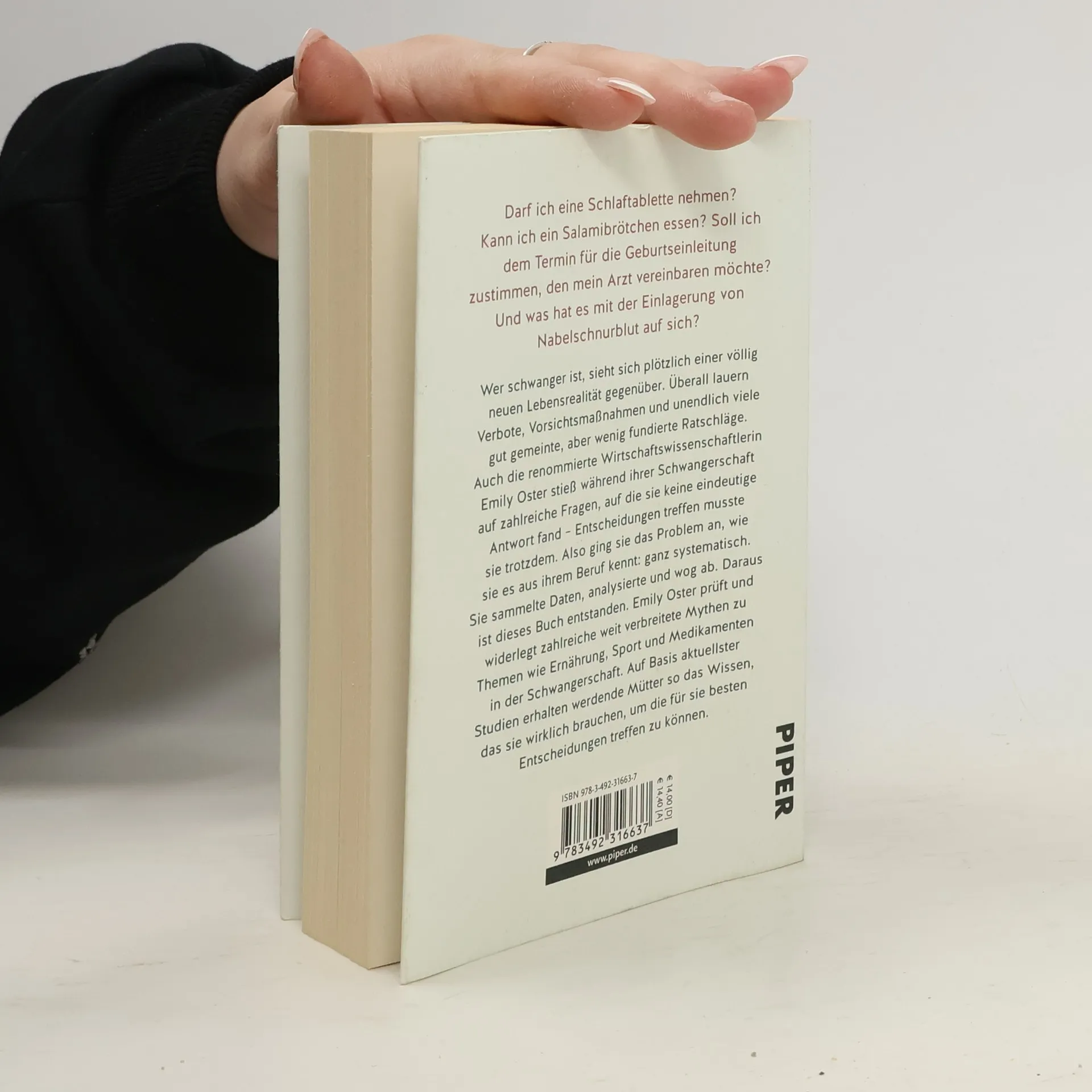 Antworten auf alle Fragen rund um die Themen Schwangerschaft und Geburt Während ihrer ersten Schwangerschaft erhielt Emily Oster immer wieder Ratschläge, die einander zwar widersprachen, aber alle mit beeindruckender Vehemenz vorgebracht wurden. Also ging sie das Problem systematisch an. Sie sammelte Daten, sie analysierte und wog ab. So ist dieses Buch entstanden: der erste große Schwangerschafts-Ratgeber aus der Feder einer Ökonomin. Emily Oster räumt auf mit zahlreichen weit verbreitete Mythen zu Ernährung während der Schwangerschaft, Alkohol und Bettruhe. Auf Basis aktuellster Studien erhalten werdende Mütter so das Wissen, das sie wirklich brauchen.