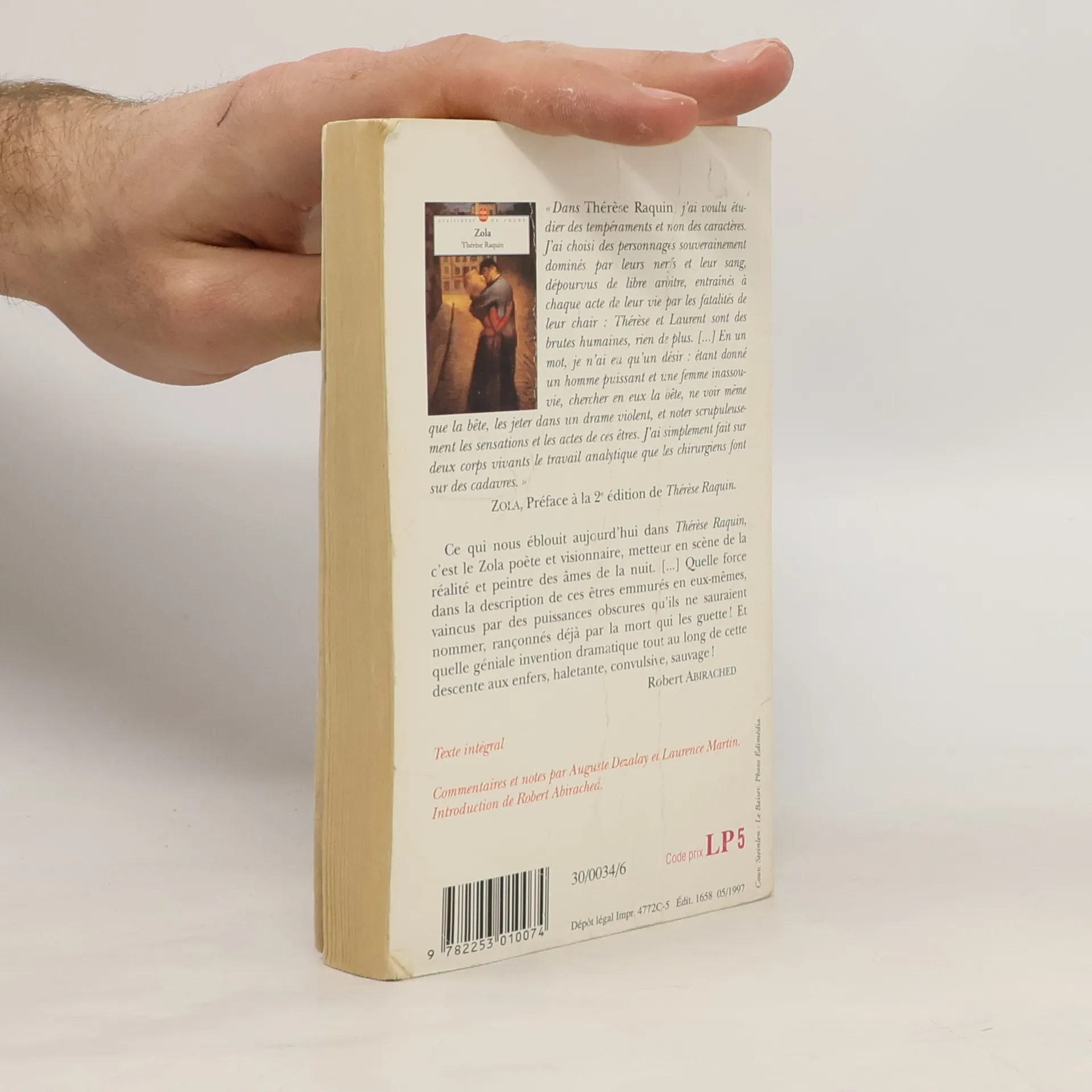 Mariée à Camille, un être frêle et maladif, Thérèse mène une vie mortifère. Au contact de Laurent, un homme violent et borné, elle révèle sa vraie nature, à la fois sensuelle et voluptueuse. Les deux amants croient pouvoir assouvir leur passion librement en assassinant l'époux gênant. Mais le remords les gagne et, de crises de nerfs en angoisses insoutenables, ils sombrent dans la folie. " Thérèse et Laurent sont des brutes humaines ", écrit Zola. Anatomiste de l'âme, il étudie leurs désordres et dissèque leurs passions. Appliquant à la littérature des méthodes d'analyse proprement scientifiques, il élabore, quelque temps avant la grande fresque des Rougon-Macquart, une oeuvre magistrale où s'affirment déjà les principes esthétiques du naturalisme. Le dossier de l'édition dévoile la genèse de l'oeuvre et sa réception au moment de sa parution. Dans de larges extraits, il offre quelques-unes des adaptations théâtrales du roman (par Zola lui-même, en 1873, et par Philippe Faure, en 1992).