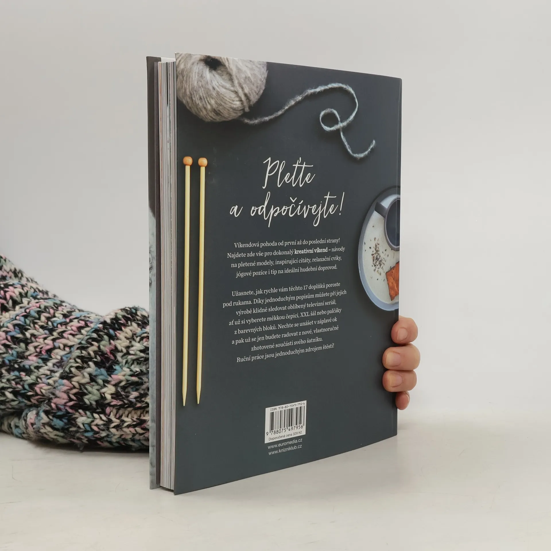 Víkendová pohoda od první až do poslední strany! Najdete zde vše pro dokonalý kreativní víkend: návody na pletené doplňky, motivační citáty, relaxační cviky, jógové pozice i hudební inspiraci. Užasnete, jak rychle vám tyto doplňky porostou pod rukama. Díky jednoduchým postupům můžete při jejich výrobě klidně sledovat oblíbený seriál. Ať už si vyberete měkkou čepici, XXL šál nebo palčáky z barevných bloků – v záplavě ok se uvolníte a pak už se jen budete radovat z nové, vlastnoručně zhotovené součásti svého šatníku! Ruční práce jsou prostě zdrojem štěstí.