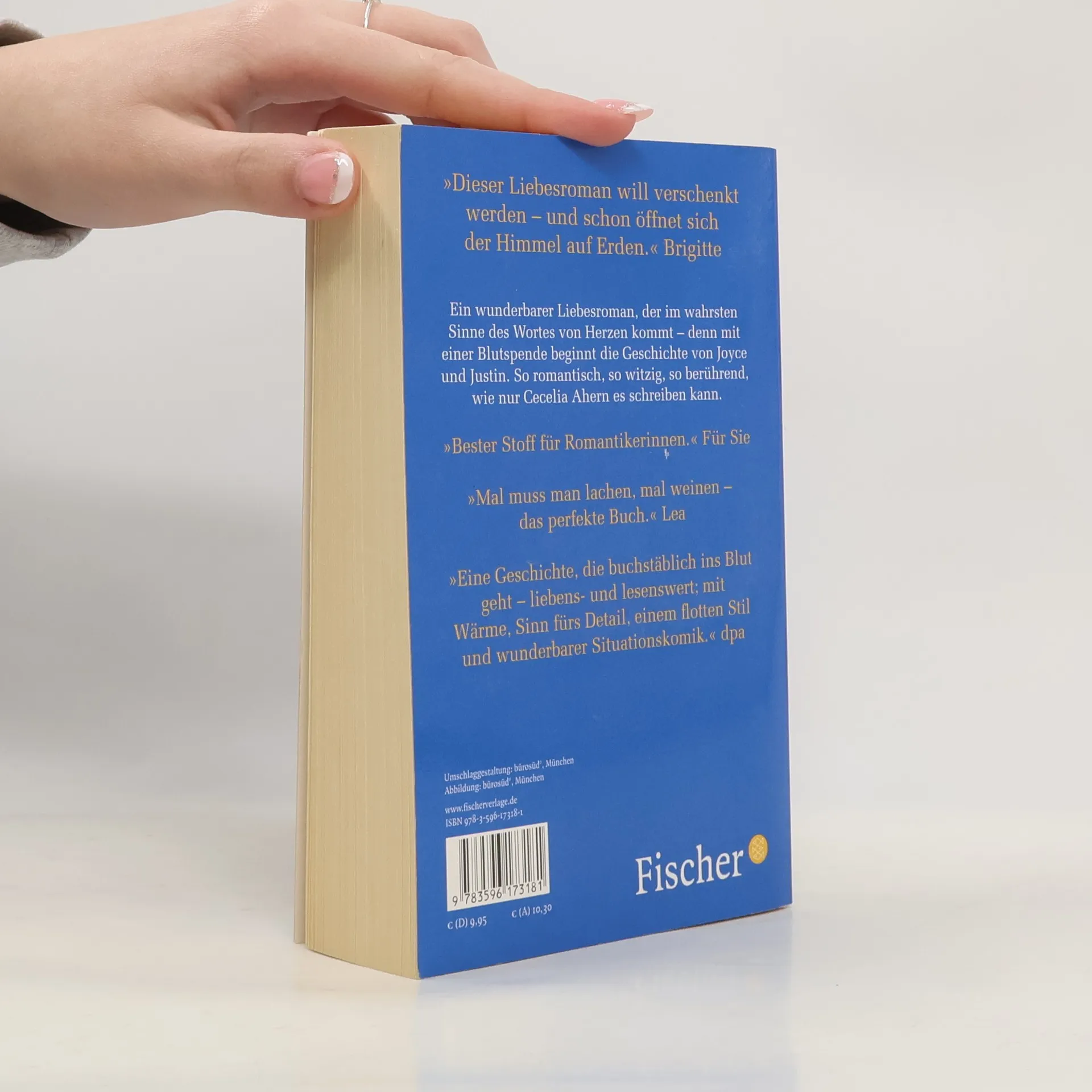 Ein wunderbarer Liebesroman, der im wahrsten Sinne des Wortes von Herzen kommt – denn mit einer Blutspende beginnt die Geschichte von Joyce und Justin. So romantisch, so witzig, so berührend, wie nur Cecelia Ahern es schreiben kann. Joyce überlebt nur knapp einen Unfall – und weiß, dass sie ab jetzt ganz anders leben will. Doch irgendetwas ist seltsam: Sie kann auf einmal fremde Sprachen und erinnert sich an Dinge, die sie gar nicht erlebt habt. Justin ist als Gastdozent in Dublin. Er ist verdammt einsam, würde das aber nie zugeben. Als er eine junge Frau trifft, die ihm ungewöhnlich bekannt vorkommt, ist er verwirrt – er kommt einfach nicht drauf, woher er sie kennen könnte … »Mal muss man lachen, mal weinen – das perfekte Buch.« Lea »Dieser Liebesroman will verschenkt werden – und schon öffnet sich der Himmel auf Erden.« Brigitte