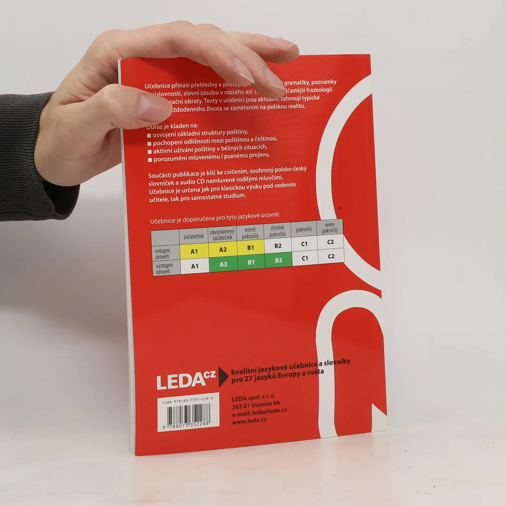Učebnice přináší přehledný a přístupný výklad polské gramatiky, poznámky k výslovnosti, slovní zásobu v rozsahu asi 1800 slov, nejčastější frazeologii a konverzační obraty. Texty v učebnici jsou aktuální, zahrnují typické situace každodenního života se zaměřením na polskou realitu. Důraz je kladen na osvojení základní struktury polštiny, pochopení odlišností mezi polštinou a češtinou, aktivní užívání polštiny v běžných situacích a porozumění mluvenému i psanému projevu. Součástí publikace je klíč ke cvičením, souhrnný polsko-český slovníček a audio CD namluvené rodilými mluvčími. Učebnice je určena jak pro klasickou výuku pod vedením učitele, tak pro samostatné studium.