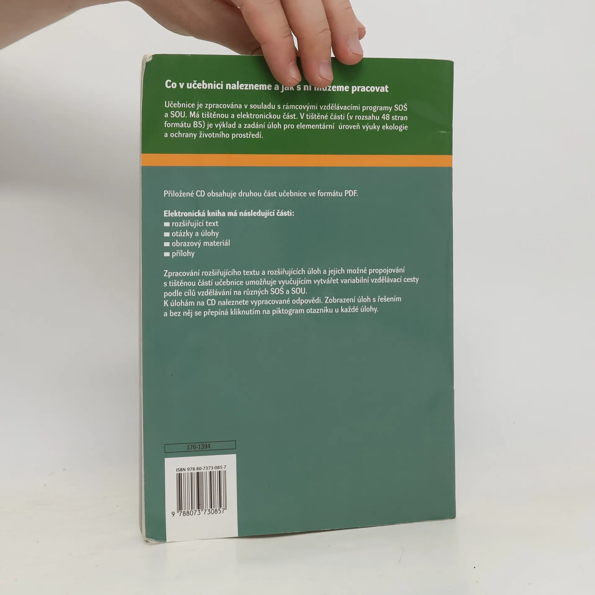Učebnice je zpracována v souladu s rámcovými vzdělávacími programy SOŠ a SOU. Má tištěnou a elektronickou část. V tištěné části je výklad a zadání úloh pro elementární úroveň výuky ekologie a ochrany životního prostředí.
