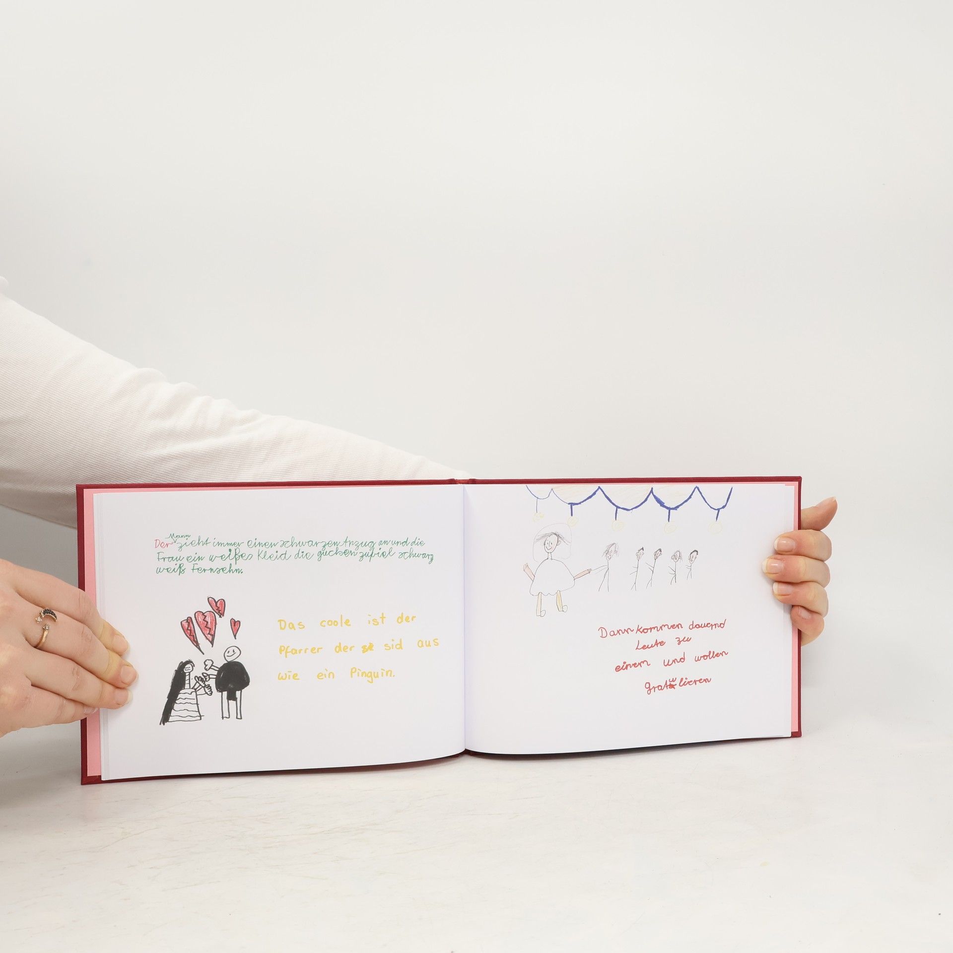 „Wer heiratet, darf den ganzen Tag knutschen... ...außer der Mann oder die Frau muss zur Arbeit.“ Erwachsene, so scheint es, sind sich der Konsequenzen einer Heirat oft gar nicht ausreichend bewusst. Die Autoren dieses Buches schon! In „Hochzeit machen ist sooo schön“ erzählen und malen 24 Schulkinder ihre Gedanken zum Thema Heiraten und Ehe. Originell, pfiffig und unglaublich witzig ist dieses hochwertig ausgestattete Büchlein ein außergewöhnliches Hochzeitsgeschenk für Eheleute, die es wirklich wissen wollen. Auch über die Tücken der Ehe wissen die Kinder Bescheid: „Dann müssen der Mann und die Frau in einem Haus wohnen und den ganzen Tag aufräumen.“ „Das einzig doofe ist das Kleid, weil man da drüber stolpern kann.“ Ja, es gibt wirklich viel zu bedenken. Größere Schwierigkeiten lassen sich jedoch von vornherein vermeiden, wenn man eine grundlegende Regel beachtet: „Wenn man sich heiratet, sollte man sich vorher zumindest schon gesehen haben.“ Unter der Anleitung des Grundschullehrers Jan Kuhl – der hauptberufliche Pädagoge hat bereits zahlreiche Geschenkbücher bei arsEdition veröffentlicht – ist ein schelmisch-heiteres Buch über den schönsten Tag im Leben entstanden. Die Kombination aus naiven Wahrheiten und bezaubernden Kinderzeichnungen geht ans Herz!