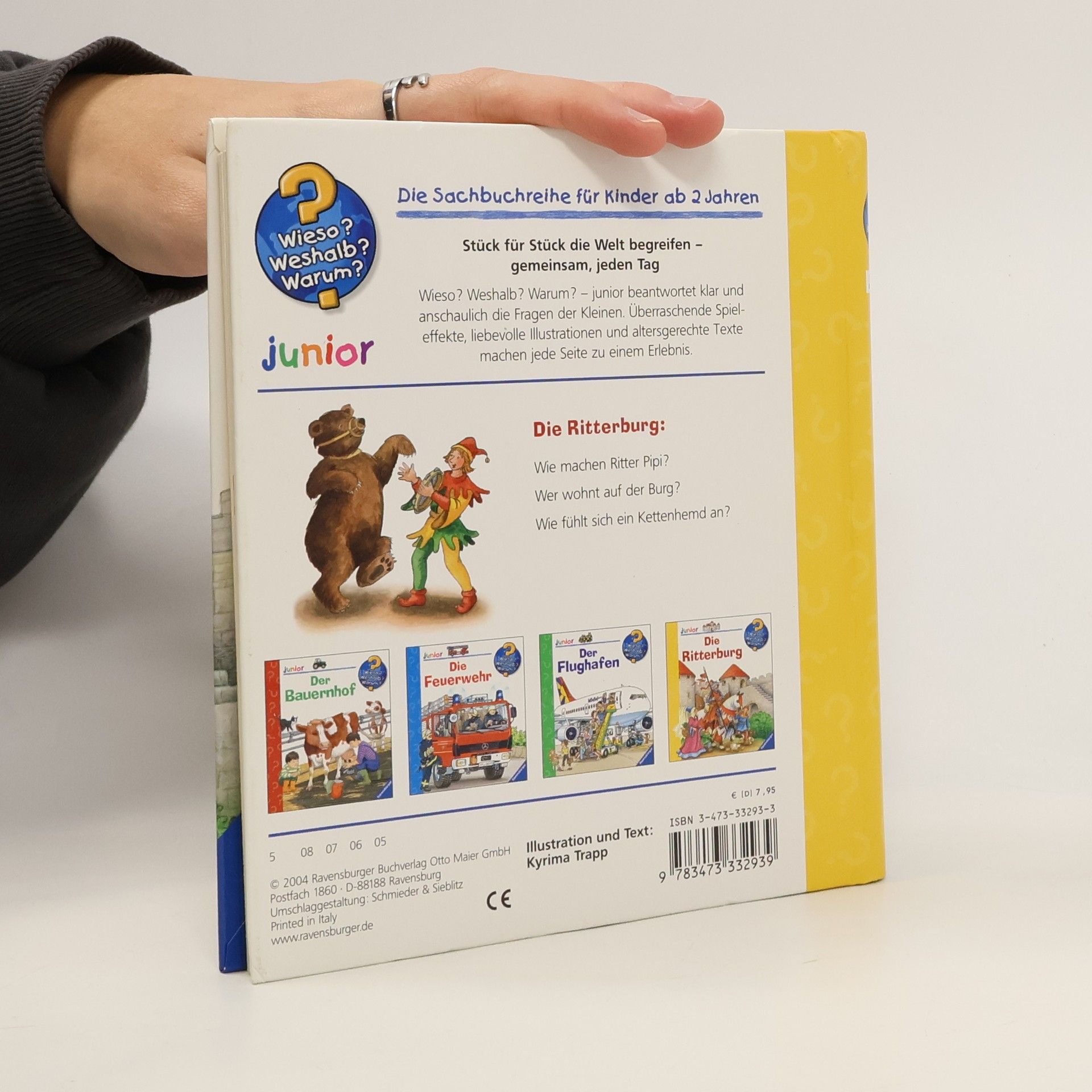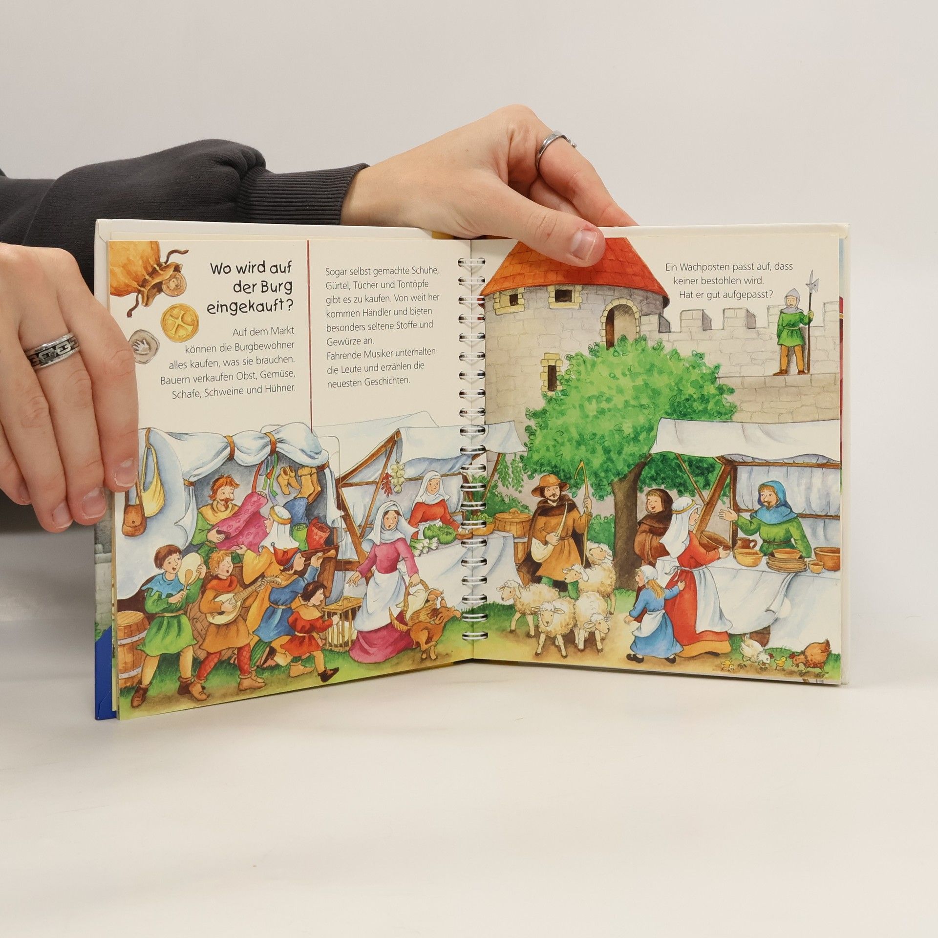 Knarrend wird die Zugbrücke heruntergelassen, und Kinder treten in die Burg von König Bodo ein. In den Türmen, Kammern und Gängen gibt es viel zu entdecken: Wer lebte wo auf der Burg? Was speisten Ritter und Burgfräulein? Was geschah bei einem Turnier? Hier finden Kinder Antworten auf ihre Fragen. Mit Klappen können sie dem Ritter seine Rüstung anlegen, ihn auf sein Pferd steigen lassen und das bunte Treiben im Burghof verändern. So kommt das Mittelalter ins Kinderzimmer. Die Sachbuchreihe für Kinder von 2-4 Jahren beantwortet die vielen Fragen, die Kinder täglich stellen. Themen wie die Feuerwehr, das Verhalten von Tieren im Winter oder die Notwendigkeit des Zähneputzens werden altersgerecht und detailverliebt behandelt. Die Reihe ist speziell auf kleine Hände und die Bedürfnisse der Kleinsten abgestimmt. Klare, liebevolle Bilder, kurze Sachtexte und handliche Klappen veranschaulichen Bewegungen und bieten überraschende Einblicke. Dies ermöglicht es Kindern, ihre Themen selbst zu erschließen. Der Spaß am eigenhändigen Entdecken, die liebevolle Umsetzung und die hochwertige Ausstattung garantieren langanhaltende Freude an jedem Buch.